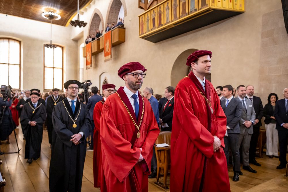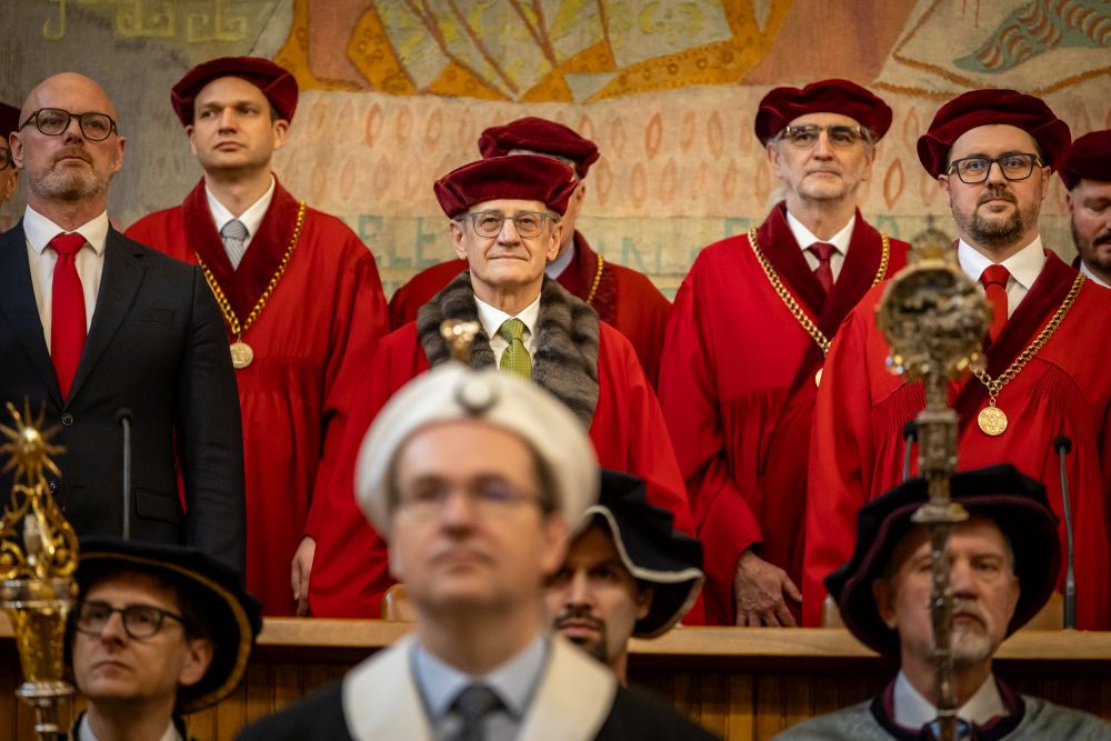 The ceremonial culmination of the handover of office, held on the second Wednesday in March at the historic Carolinum, was attended not only by members of Charles University’s academic community, but also by leading representatives of the state, other domestic and European universities, and public institutions. The ceremony was led by Vice-Rector for Engagement and Societal Impact Martin Vlach, who opened the meeting by inviting attendees to observe a minute of silence in memory of the recently deceased Rector Emeritus Karel Malý.