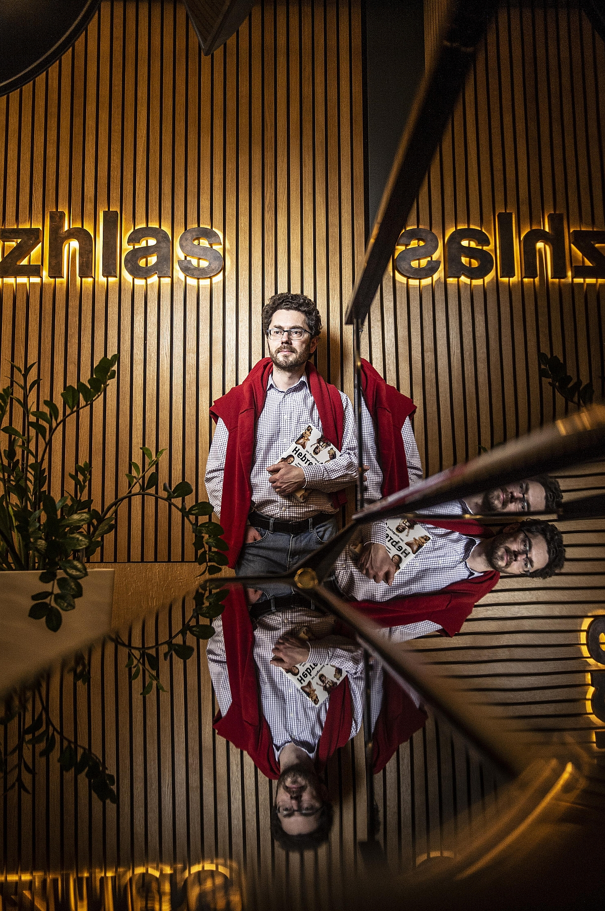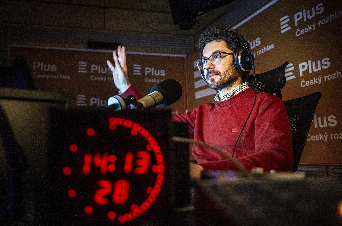 Czech Radio Plus commentator Jan Fingerland, author of the 2022 bestseller Hebrejky, in the studio before going on air.