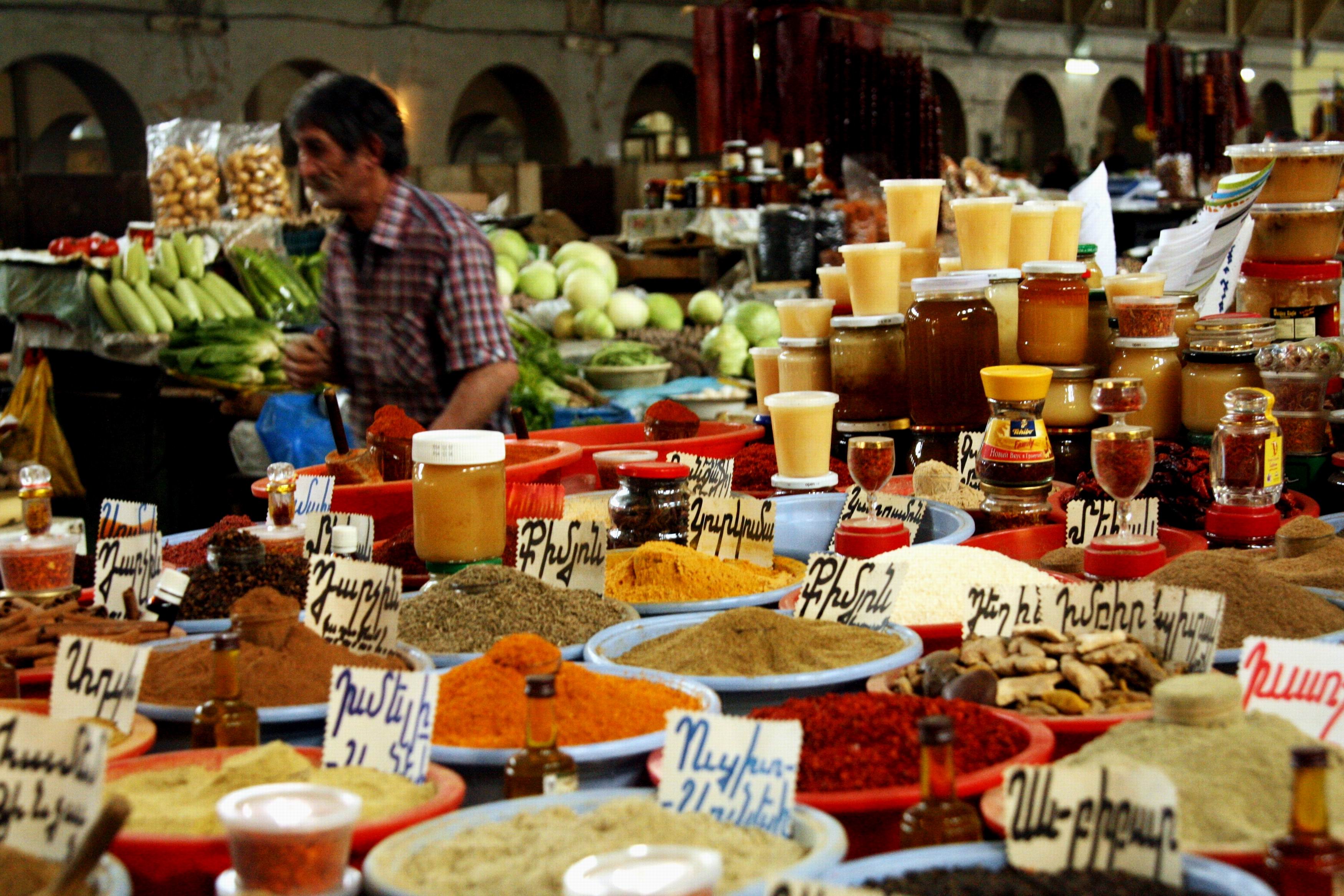 A plethora of spices on sale at a local market in Yerevan.