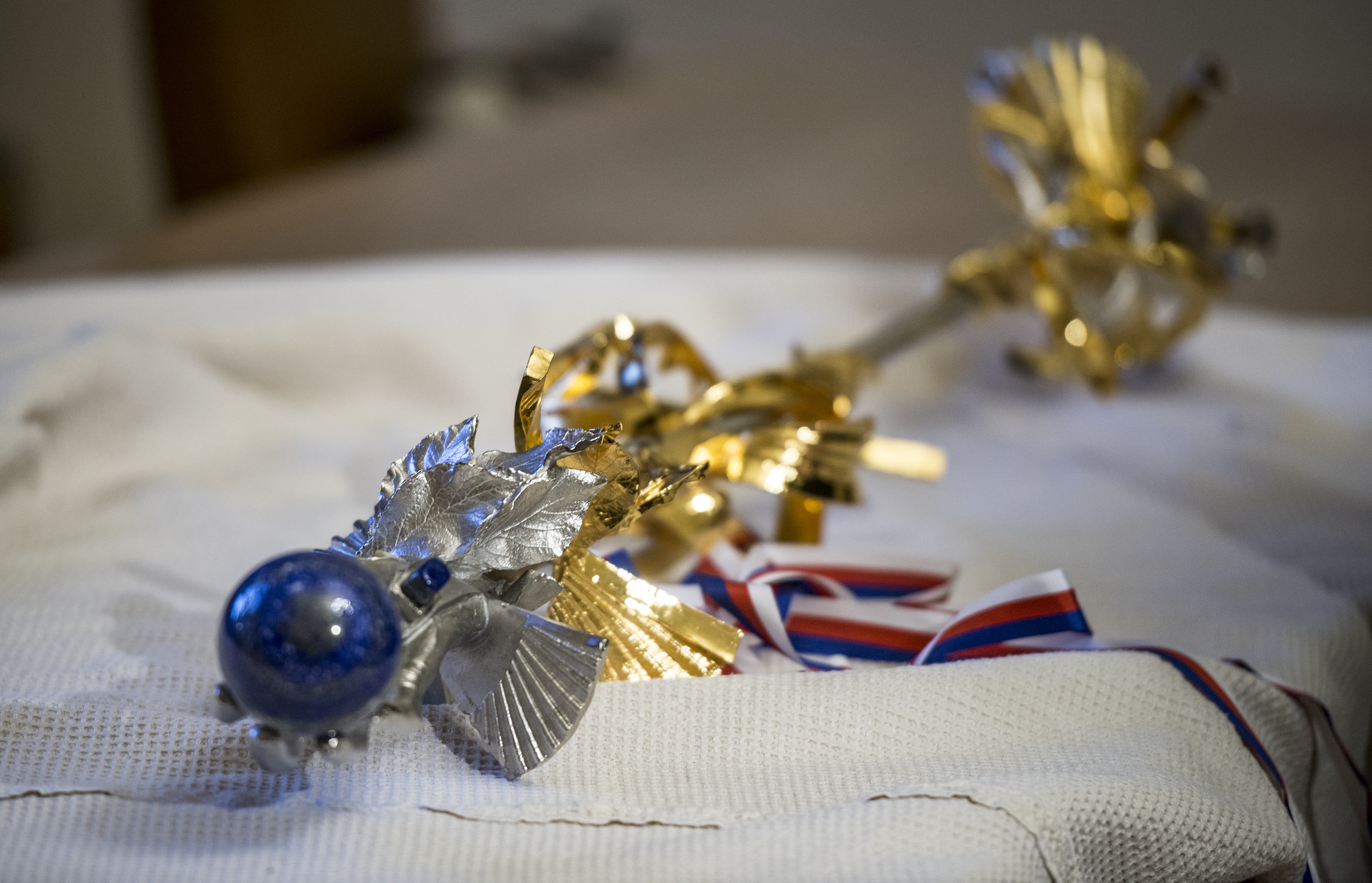The exhibition also showcases the uniquely designed ceremonial gown, its grandeur similar to that of the mace, with deep blue material, golden embroidery and buttons alongside a red over-robe. The gown was designed by Charles University graduate Alena Zvolánková, who also studied at the Department of Clothing Technology at the Technical University of Liberec, and will like the mace be a part of future graduation and matriculation ceremonies for students of the Faculty of Social Sciences as it is worn by the faculty’s bedel.