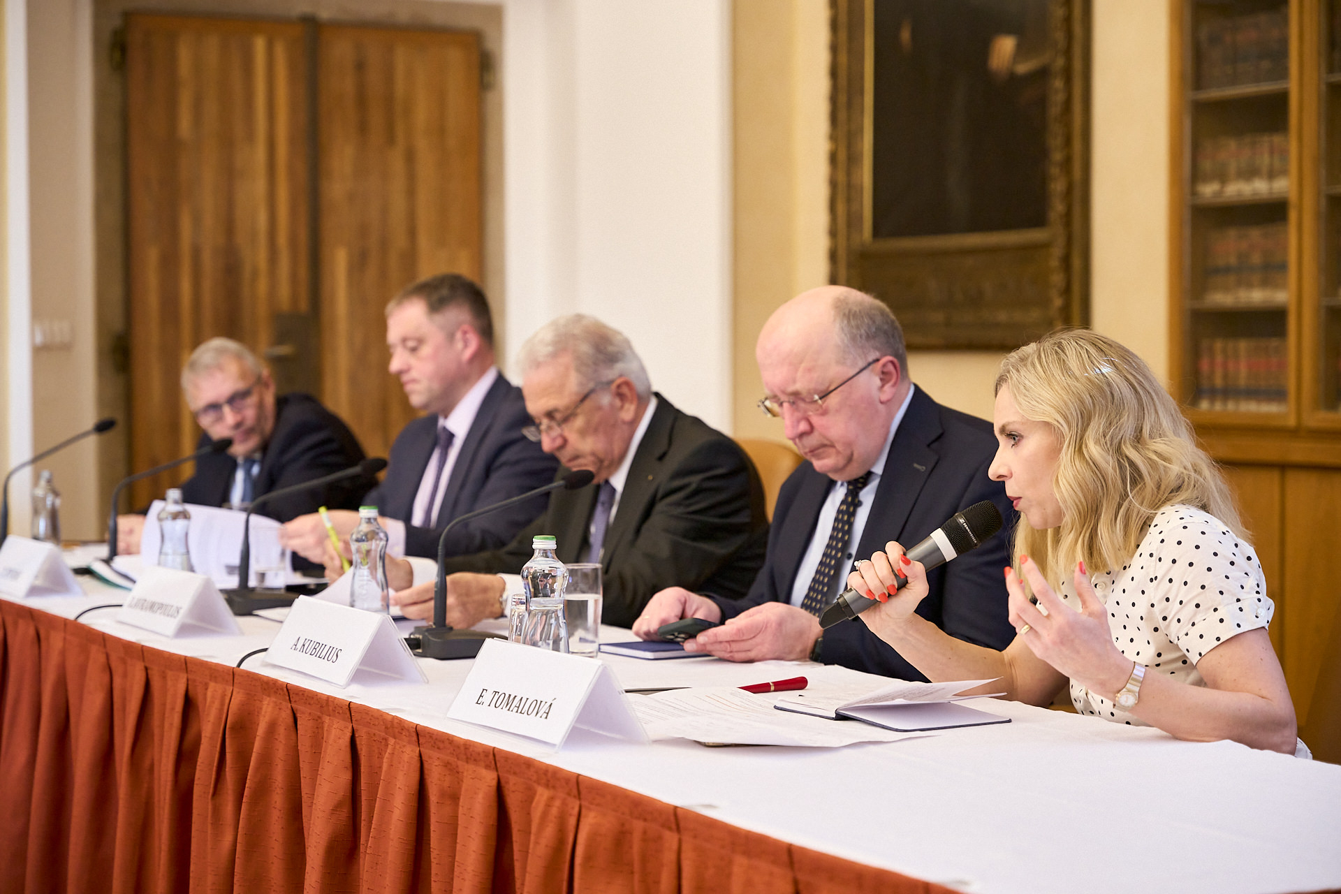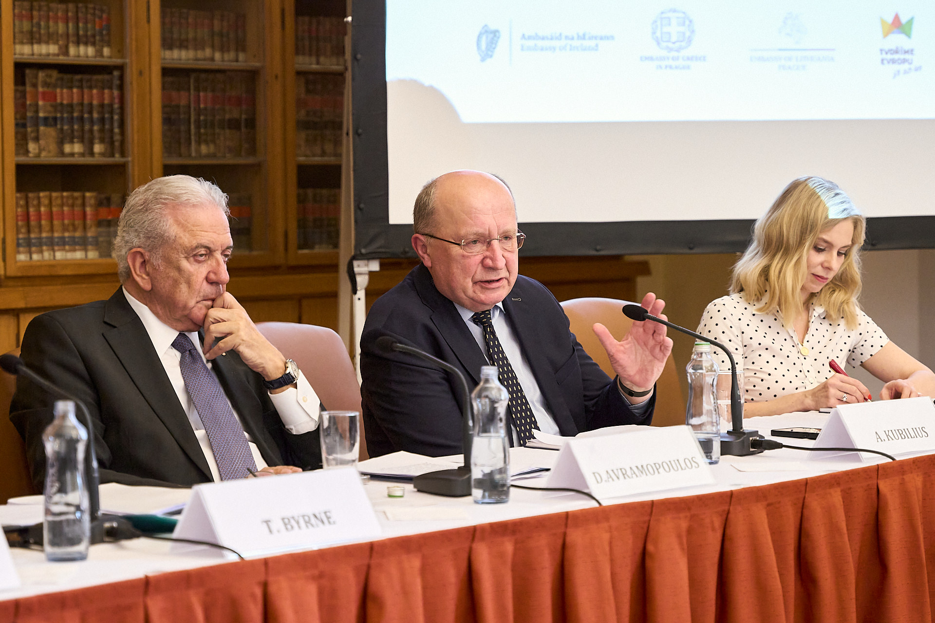 Eliška Tomalová, from the Institute of International Studies at CU, spoke briefly about EU accession before introducing the main speakers: the Czech government’s Minister for European Affairs Martin Dvořák, Ireland’s former Minister of State for European Affairs Tomas Byrne, former EU commissioner and former Athens mayor Dimitris Avramopoulos, and MEP and former prime minister of Lithuania Andrius Kubilius. Also invited to speak was Czechia's former Minister for European Affairs, Stefan Füle.