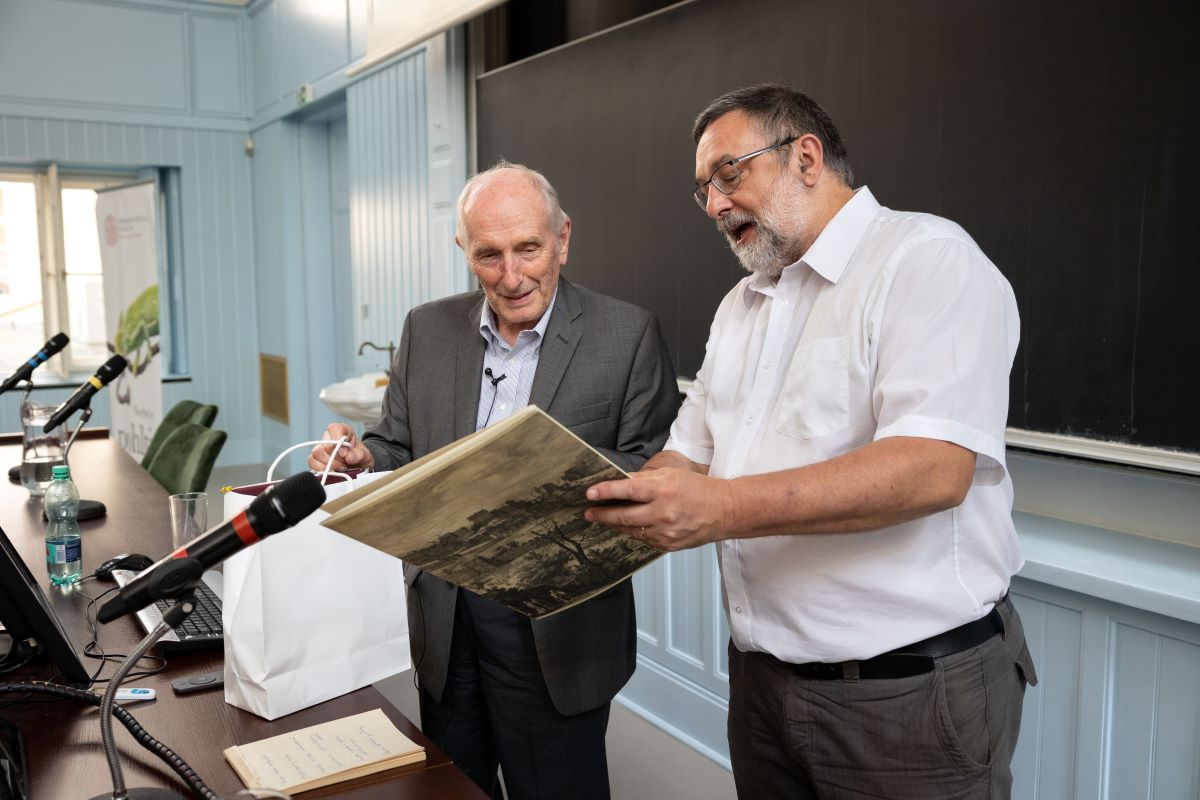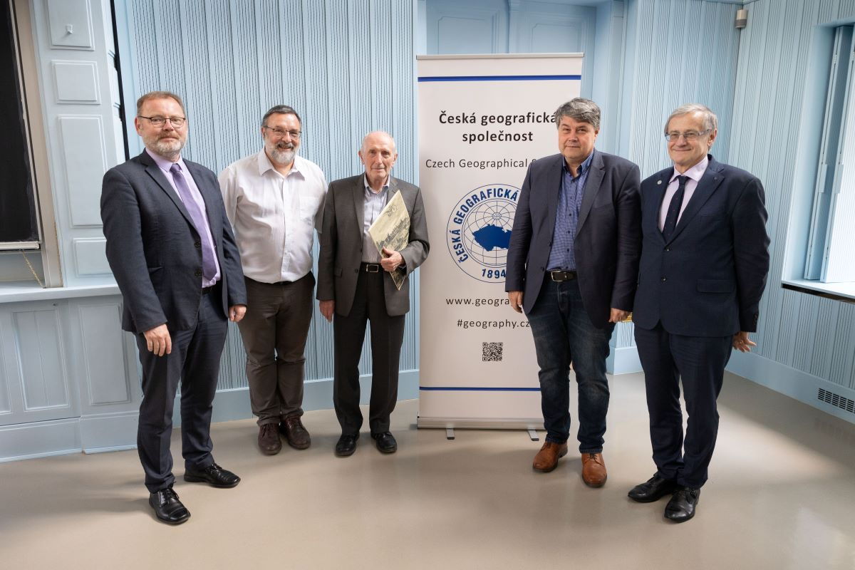 The President of the Czech Geographical Society, Associate Professor Pavel Chromý, greeted Václav Smil on behalf of all Czech geographers and presented the scientist with a commemorative plaque.