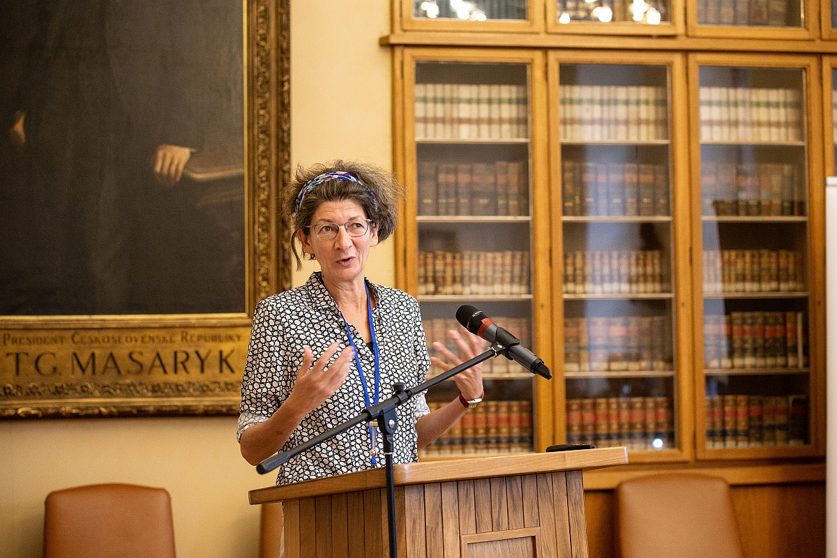 The University of Vienna's Claudia Kraft poses at the exhibition "The Vienna Circle and its Prague Connection" at the Carolinum on Oct. 4, 2021.