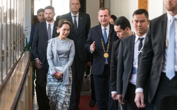 Myanmar’s Aung San Suu Kyi has begun a three-day visit to the Czech Republic. After meeting for talks with the prime minister, Ms. Suu Kyi was hosted by Charles University on Monday afternoon.