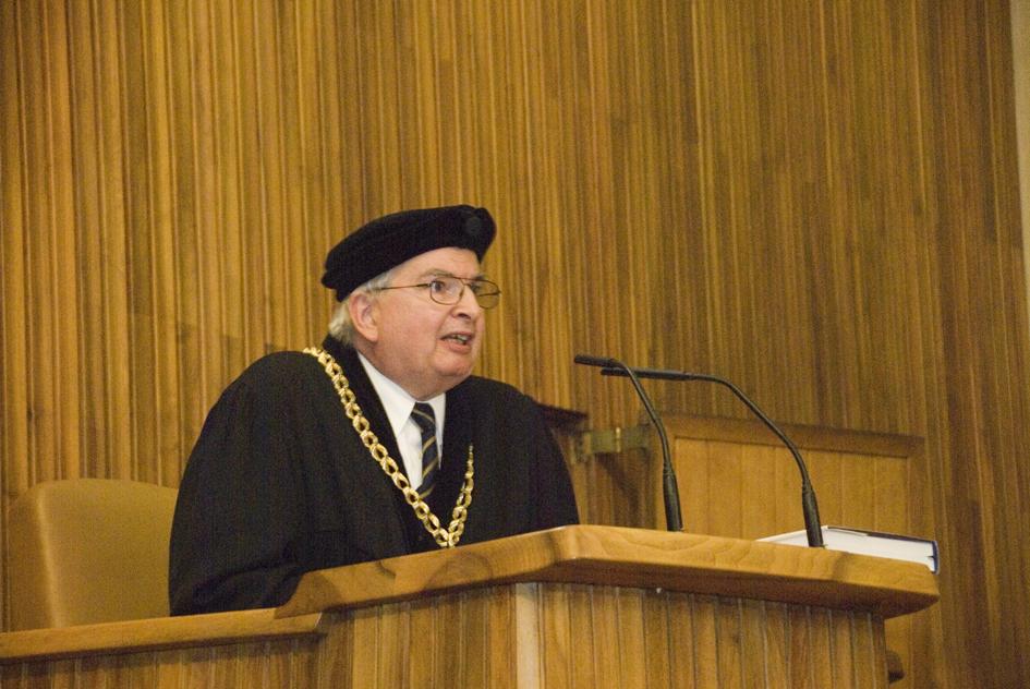 „Univerzitní vzdělanost tvoří protiváhu úzkoprsosti, šosáctví, maloměšťáctví a nacionalismu. Přál bych si, aby tento její cíl nezapadl v lavině každodennosti, která nás všechny čeká,“ pronesl emeritní děkan 3. lékařské fakulty profesor Cyril Höschl, který také připomněl historický význam prvního svobodného rektora profesora Radima Palouše. Ve svém projevu se vrátil i k počátku Univerzity Karlovy a zdůraznil, že středověké univerzity svou internacionálností vynikaly nad současnými. „Dnešní univerzita slouží vymezeně potřebám státu, profesory jmenuje stát, zkoušky na univerzitě jednoho státu většinou neplatí automaticky ve státě druhém. Z tohoto pohledu byla na středověké univerzitě svoboda daleko větší,“ konstatoval Cyril Höschl.