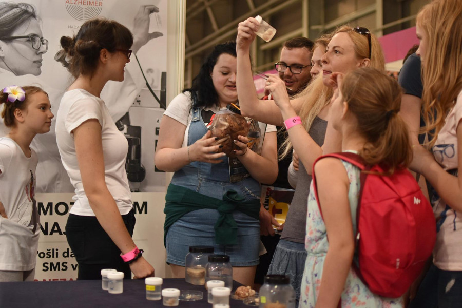 Na akcích pro širokou veřejnost návštěvníkům srozumitelně vysvětlují vše, co je zajímá a co se Alzheimerovy choroby týká. „Náš přístup je velmi individuální, vždy záleží na konkrétním návštěvníkovi – někoho zajímá výzkum, někdo chce slyšet jen o prevenci, někteří chodí s konkrétními dotazy,“ říká Bára Černá Petra Pohanová doplňuje: „Pro návštěvníky toho máme připraveno spoustu: výstavku reálných mozků savců i jiných obratlovců a ukázku magnetické rezonance zdravého mozku a pacienta s Alzheimerovou chorobou. Také ukazujeme mnoho fotek a videí přímo z našeho výzkumu v laboratoři. A nezapomínáme ani na děti, pro ně máme připravené interaktivní hry.“