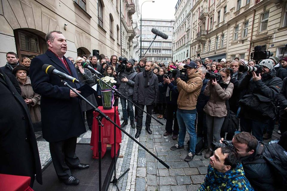Na pietní připomínce událostí před 87 lety a 28 lety vystoupil také rektor Univerzity Karlovy, profesor Tomáš Zima. „Na tomto místě si dovoluji apelovat na lidskou slušnost, statečnost a odpovědnost. Buďme slušní, aktivní a  občansky stateční a odpovědní. Svobodu a demokracii uhájíme jen tehdy, když oni budeme každý den usilovat,“ vyzval rektor účastníky piety.