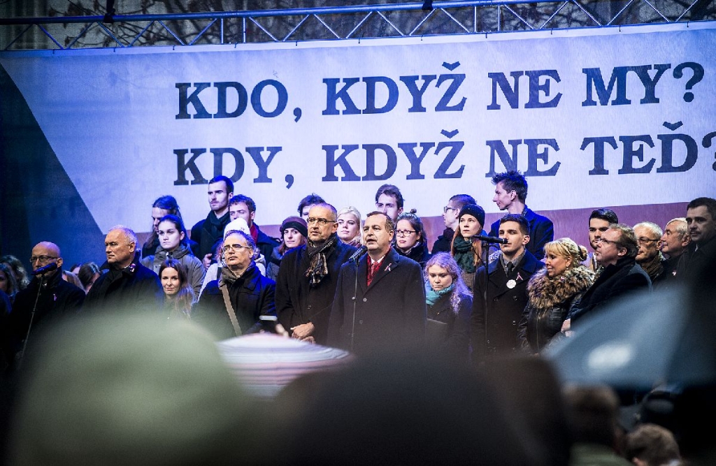Zástupci studentů Sára Drahokoupil Vidímová z FF UK a Michal Říha z PF UK pak ve svých projevech zmínili, jak na významné události československých dějin nahlížejí dnešní mladí lidé.