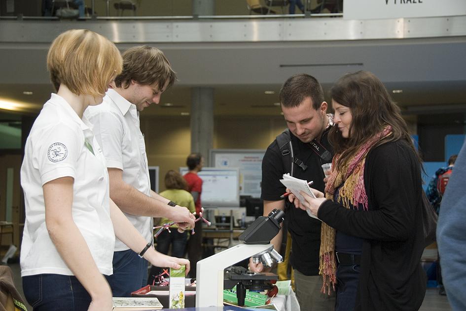 Den vědy na pražských vysokých školách se již tradičně uskutečnil v prostorách Vysoké školy ekonomické a byl určen jak návštěvníkům z řad studentů, tak i široké veřejnosti. Každá ze zapojených vysokých škol dostala příležitost prezentovat své obory a výzkum u výstavního stánku, Univerzitu Karlovu tentokrát zastoupila královéhradecká Farmaceutická fakulta.