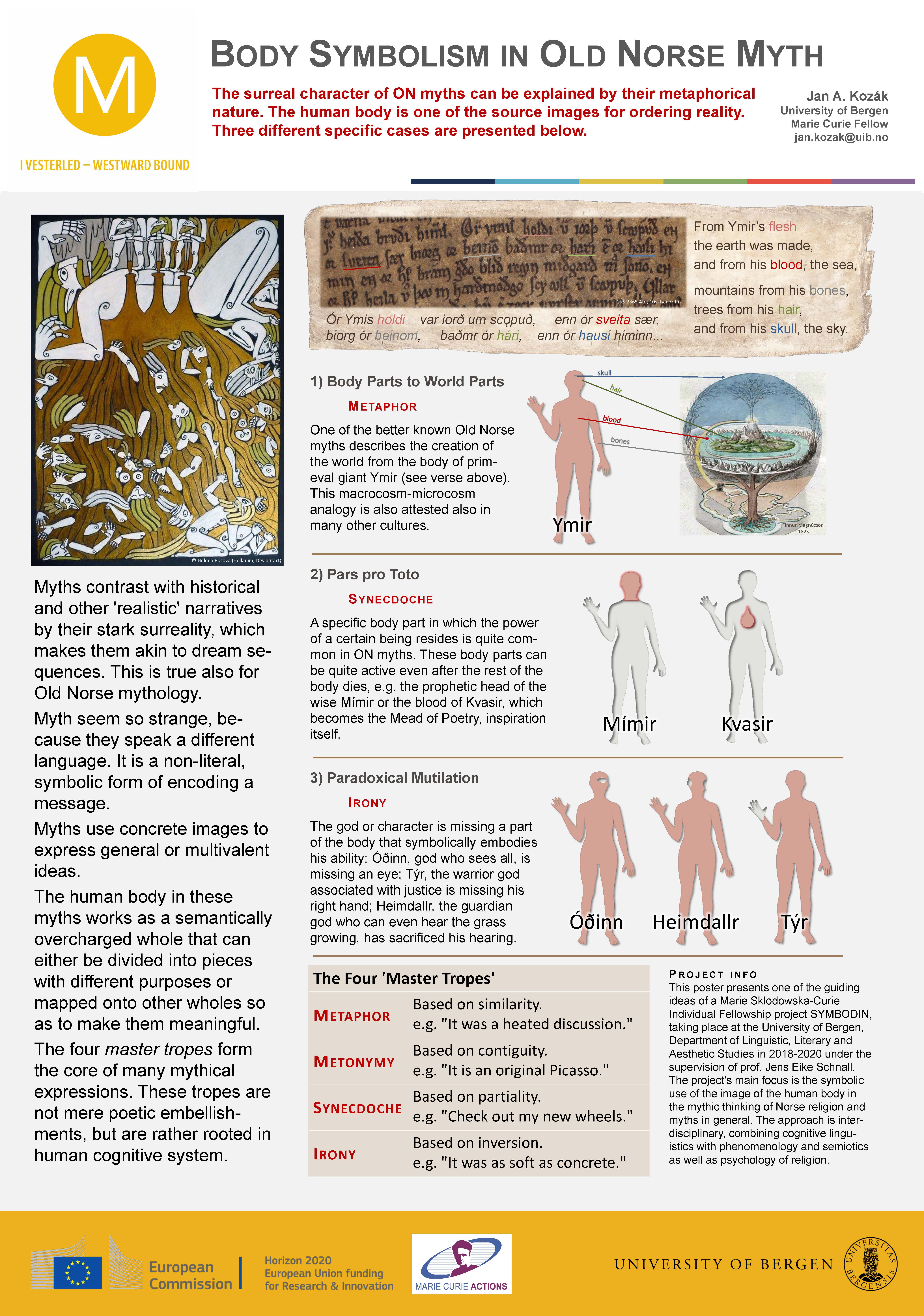 Nyní už je Jan A. Kozák zpět v Česku, na pražské „fildě“, ale ještě donedávna působil jako výzkumník v norském Bergenu. Na tamní humanitní fakultě řešil od roku 2018 výzkumný záměr Symbodin, na který získal prestižní stipendium Marie Curie-Skłodowské (Horizon 2020). Cílem bádání je za pomoci historických a filologických metod i kognitivní lingvistiky porozumět utváření mýtů na základě metafor. Kozáka, jenž umí staré jazyky včetně sanskrtu anebo latiny, zajímá mimo jiné vnímání těla a tělesnosti v severských mýtech.