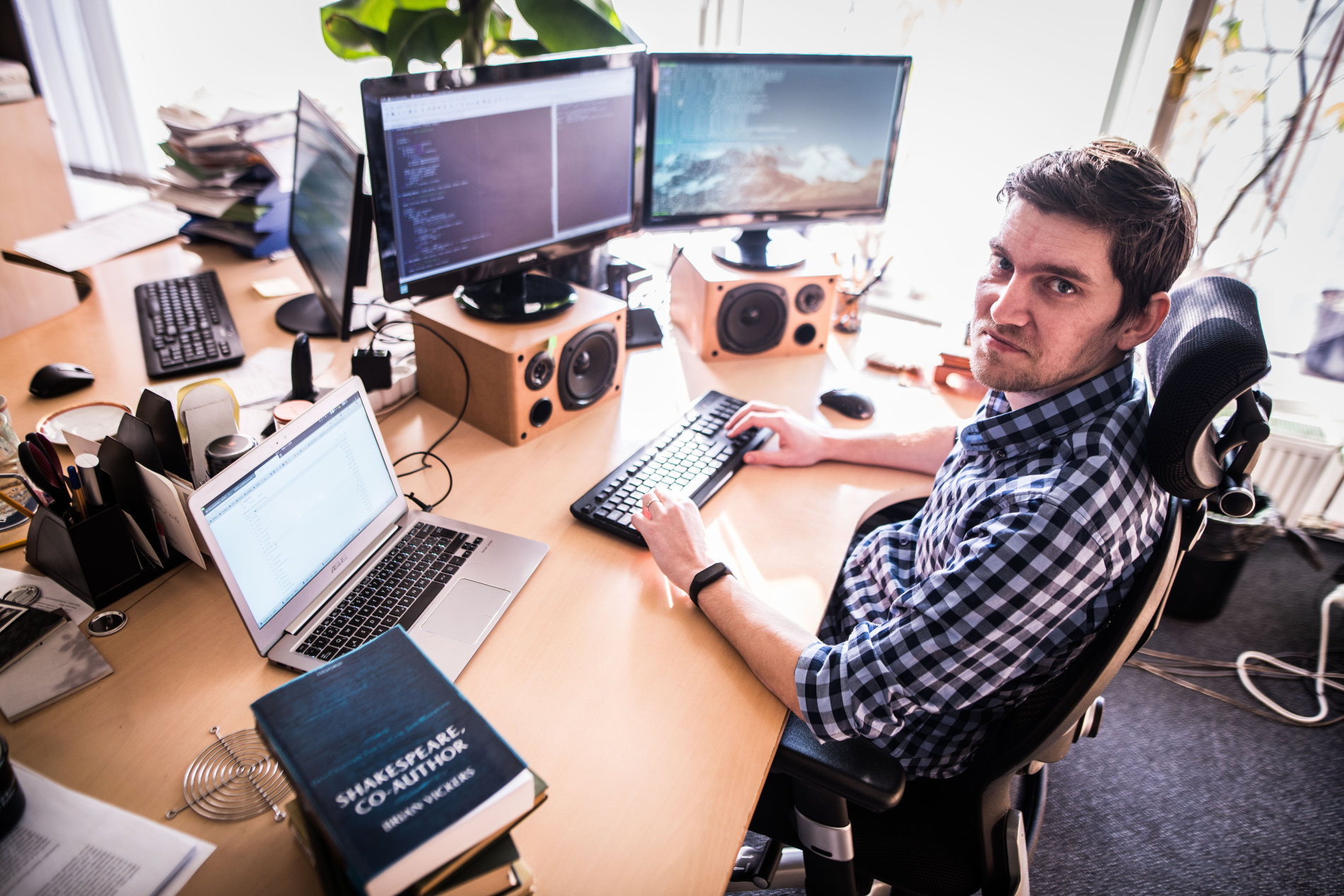 „Parametry strojového učení je možné v hotových knihovnách nastavit tak, aby to odpovídalo vašim datům. Nejprve musíte data označit, musíte je tokenizovat, rozdělit text na slova. Také musíte označit přízvuk, tedy odlišit přízvučné a nepřízvučné slabiky, a pak přijde analýza – musíte stroj naučit rozpoznávat práci jednotlivých autorů, a tam přišlo na řadu moje kódování. Samozřejmě jsem to nekódoval od nuly; některé články, které o mé práci vyšly, chybně uváděly, že jsem použil neuronové sítě. Ty jsem opravdu nepoužil. Jednalo se o velmi populární techniku v oblasti rozpoznávání autorství, které se říká support vector machine; na tu jsem ovšem nepřišel já. Použil jsem obecné softwarové knihovny strojového učení, které byly navrženy pro tento účel.“
