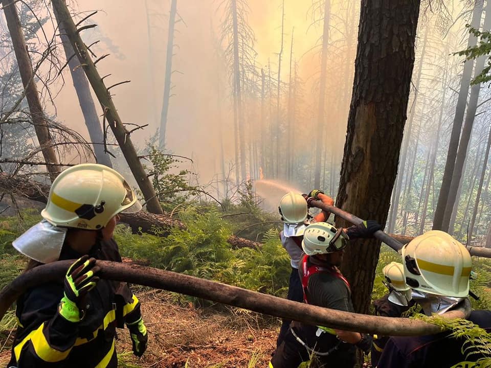 Stovky hasičů likvidují rozsáhlý požár lesa v Hřensku, tedy v Národním parku České Švýcarsko. Foto: Hasičský záchranný sbor ČR
