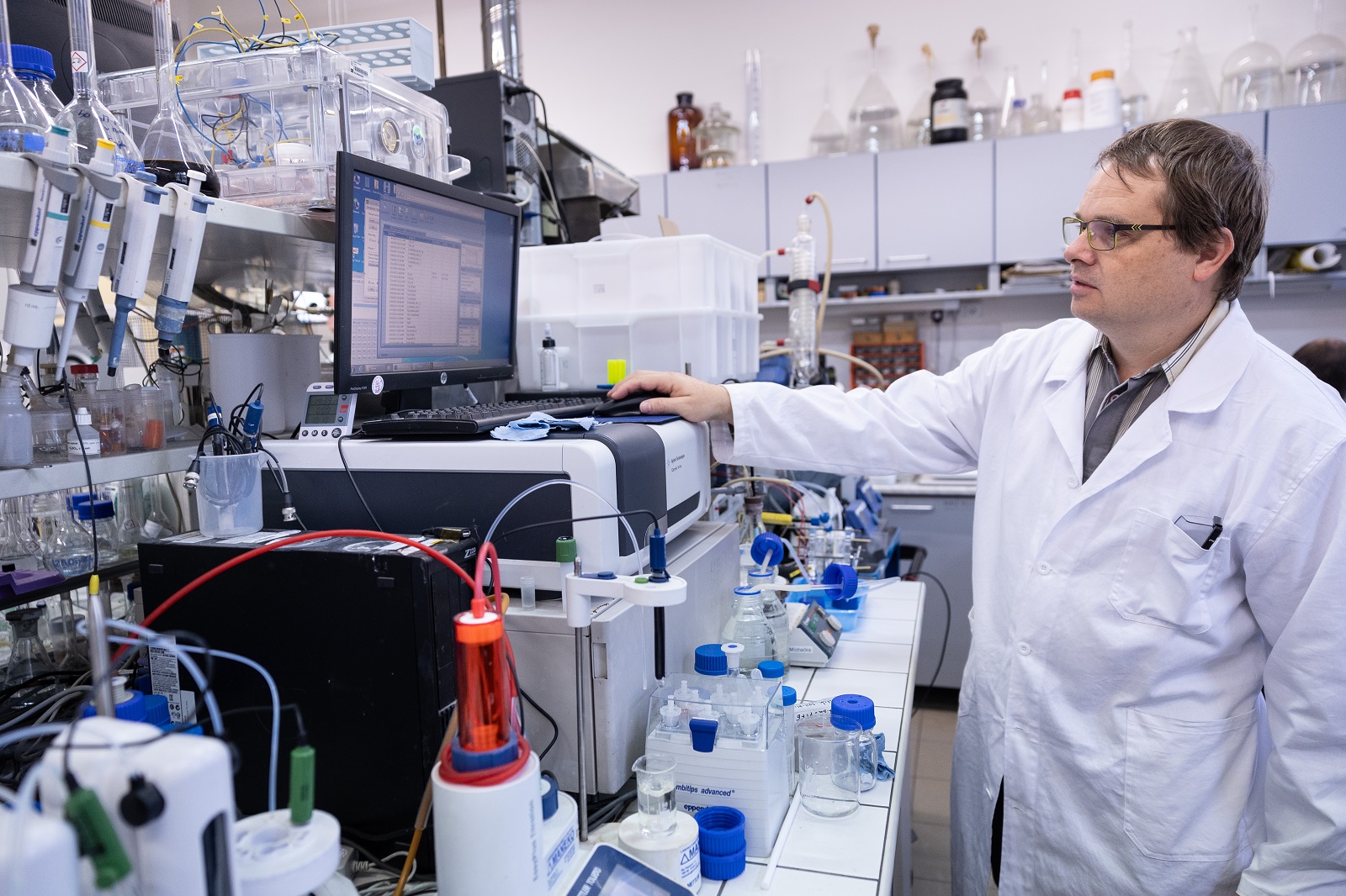 dovnitř 2V laboratoři VŠCHT se svým školitelem docentem Martinem Paidrem.