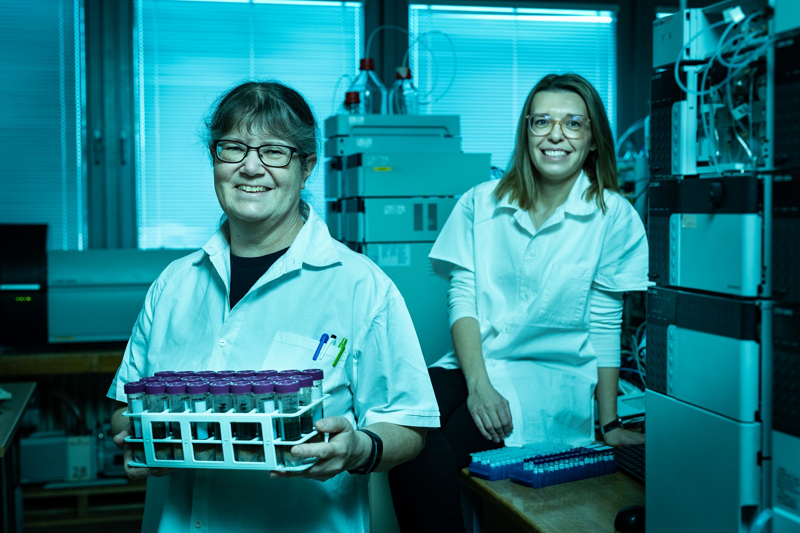 dovnitř 1Výzkumnice Barbora Szotáková (vlevo) a Lucie Raisová v rámci grantu TA ČR stanovují koncentraci veterinárních léčiv v chlévské mrvě.