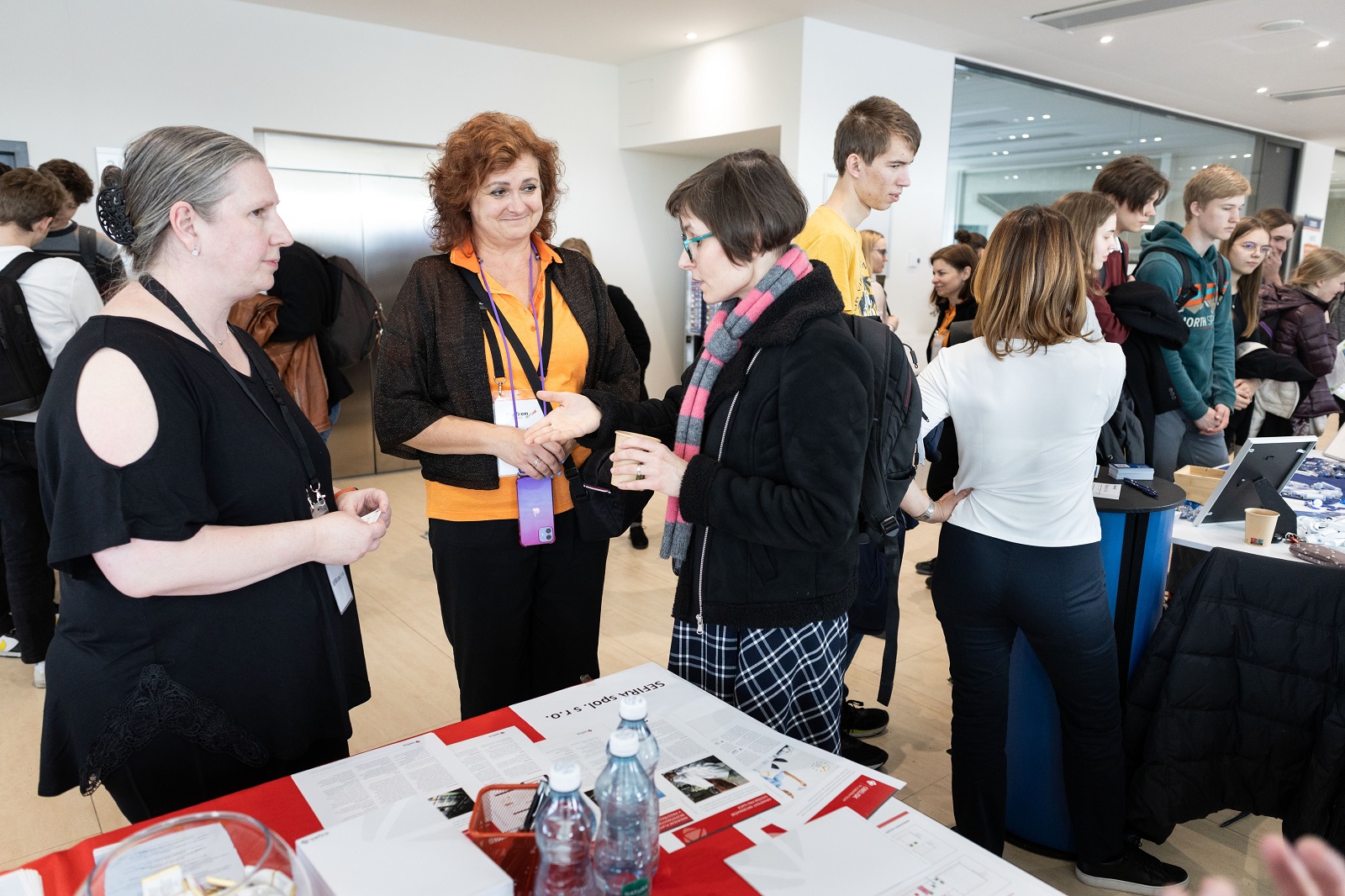 „Jenže v praxi nejste schopna všechno vyřešit zcela sama. Potřebujete umět jednat s lidmi, naslouchat tomu, kdo potřebuje problém vyřešit, pochopit přesně proč a zároveň koordinovat technické záležitosti s dalšími kolegy. Toto je podle mě nutná podmínka úspěchu našich lidí. Fakt, že k tomu ještě navíc mají hluboké znalosti ze studia, z nich dělají dobré partnery pro další skupiny lidí, kteří je respektují. Jedině takoví zaměstnanci jsou pro firmu přínosem. K čemu je vám génius, s nímž ostatní nechtějí pracovat?“ argumentuje Jan Kubát, jehož společnost je strategickým partnerem MFF UK již od roku 2016 a jako jedna z mála na veletrhu vysloveně cílí na mladé fyziky a fyzičky.
