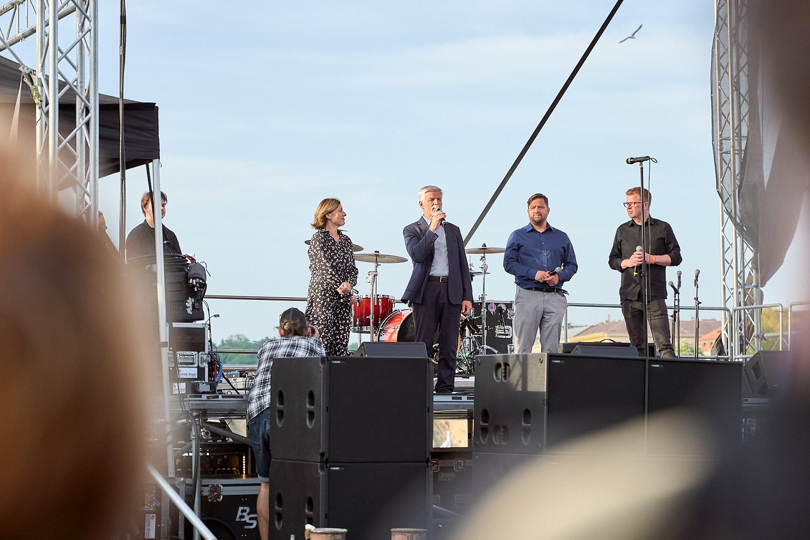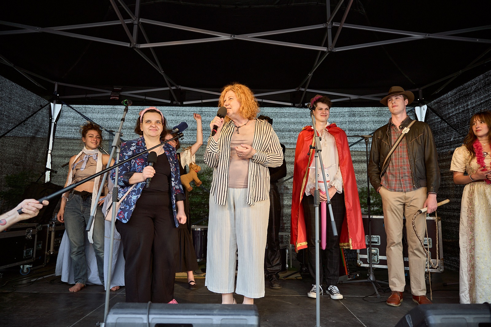 „Je skvělé vidět tu tolik radostných tváří. Na fakultě mi většinou připadáte příliš vážní, příliš zodpovědní,“ vítá příchozí z hlavního podia v Kampusu Hybernská děkan FSV UK Tomáš Karásek. „Slavte a bavte se. Ať máte úspěšné zkouškové období a učitelé vás moc nezlobí,“ přeje studentům k jejich svátku prorektorka pro studijní záležitosti Markéta Martínková, a oficiálně tak zahajuje Studentský Majáles 2024.