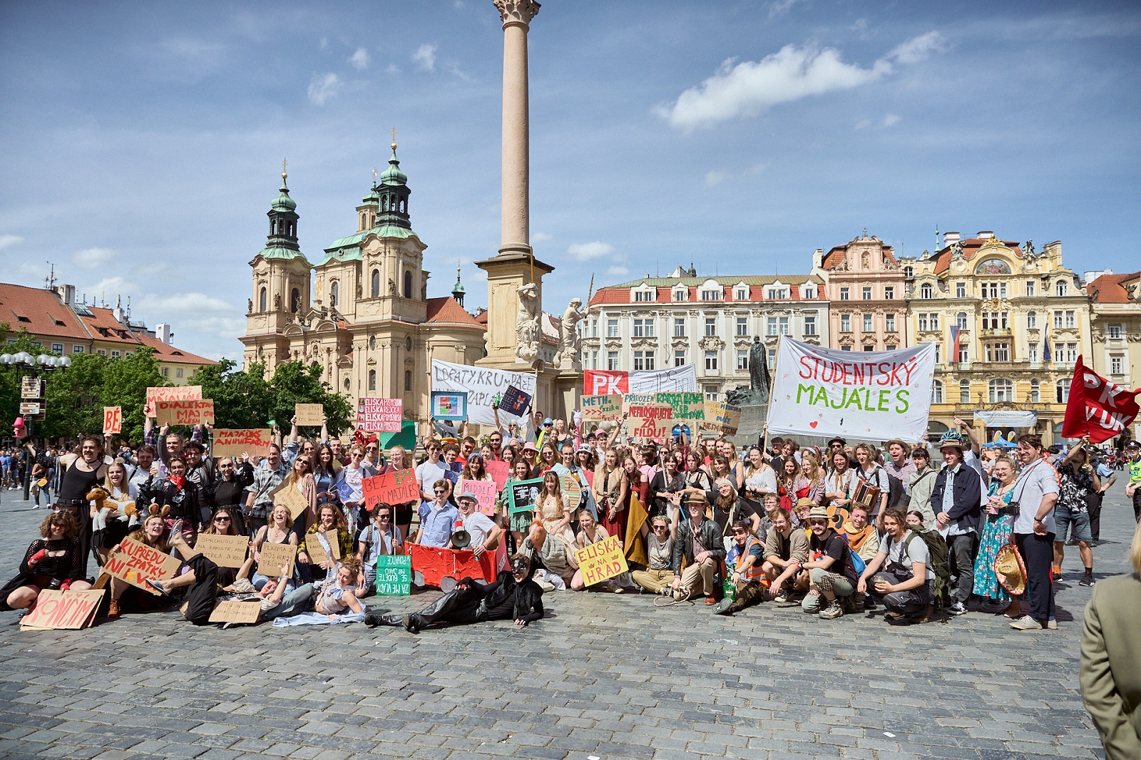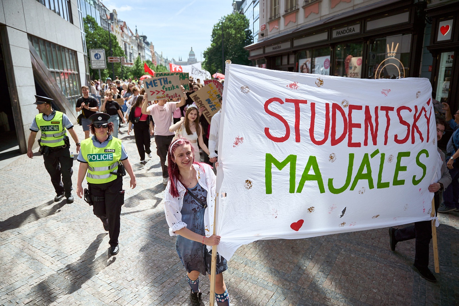 První máj patří studentům a jejich majálesu. V převlecích, s tlampači, bannery, hudebním, mediálním i policejním doprovodem vyráží průvod z Kampy přes centrum Prahy do Kampusu Hybernská, kde po poledni každoročně zahajují Studentský Majáles, odpoledne volí jeho krále či královnu a baví se do noci. Tentokrát se ovšem neslavila jen láska a studentství, ale také výročí vstupu České republiky do Evropské unie.