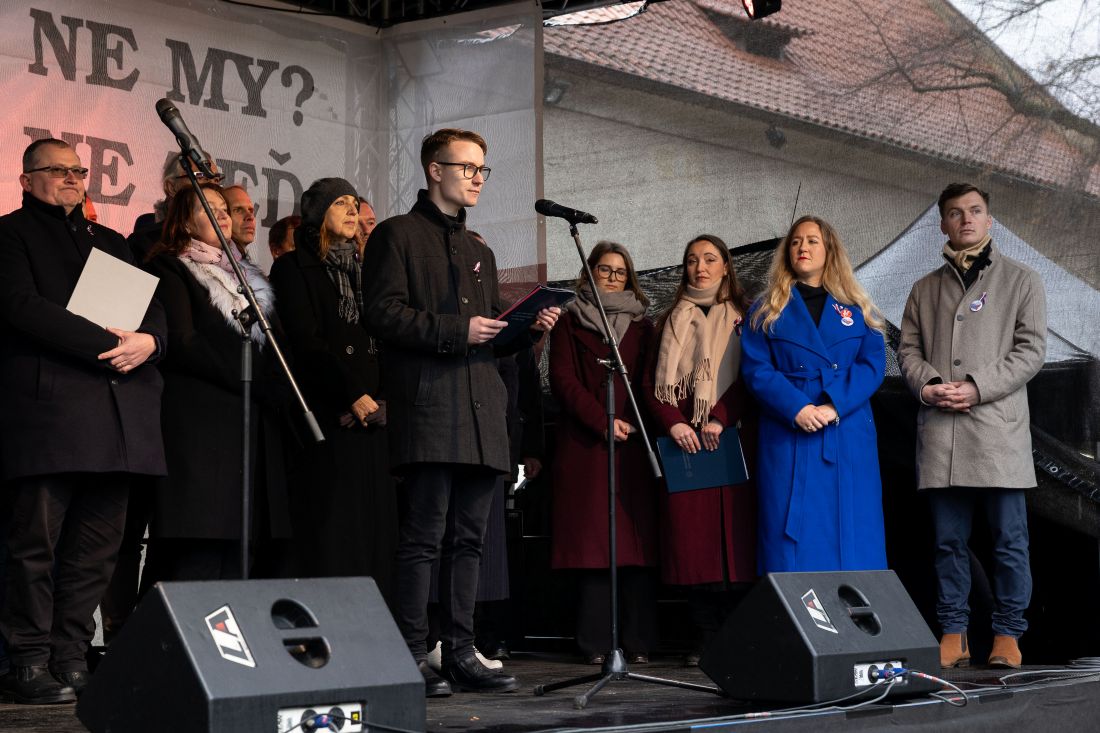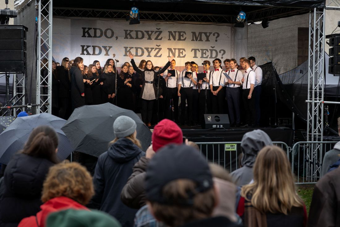 Prostor dostal také zástupce rektorátu Českého vysokého učení technického v Praze, Zbyněk Škvor, jenž ocenil odvahu a vytrvalost všech, kteří se postavili totalitě a upozornil na to, že společnost nesmí v takovýchto vypjatých momentech spoléhat pouze na studující. Závěrečné slovo pak patřilo předsedkyni Studentské komory Rady vysokých škol Tereze Markové, která připomněla život a osud Jana Opletala a zdůraznila, že jeho odvaha postavit se bezpráví zavazuje i dnešní studenty a studentky, aby nebyli lhostejní k ohrožování svobody a demokracie.