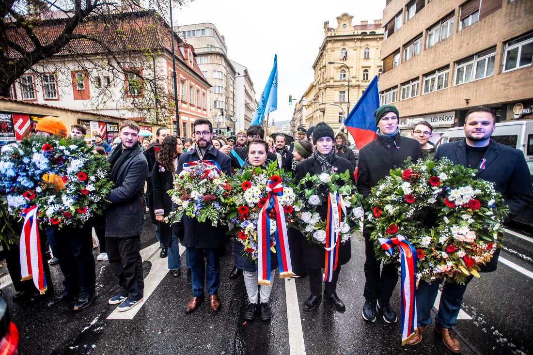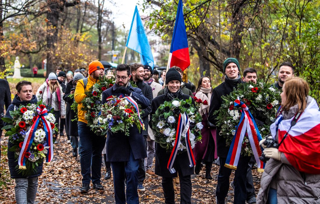 Už v půl deváté ráno tak položila rektorka Univerzity Karlovy Milena Králíčková spolu se zástupci a zástupkyněmi českých vysokých škol a ústavními činiteli České republiky květiny a věnce k pamětní desce 17. listopadu na Národní třídě. Poté se průvod přesunul k Hlávkově koleji v Jenštejnské ulici, kde zástupci a zástupkyně vysokých škol, Akademie věd ČR, politické reprezentace, studentských organizací i široké veřejnosti uctili památku obětí nacistické perzekuce.
