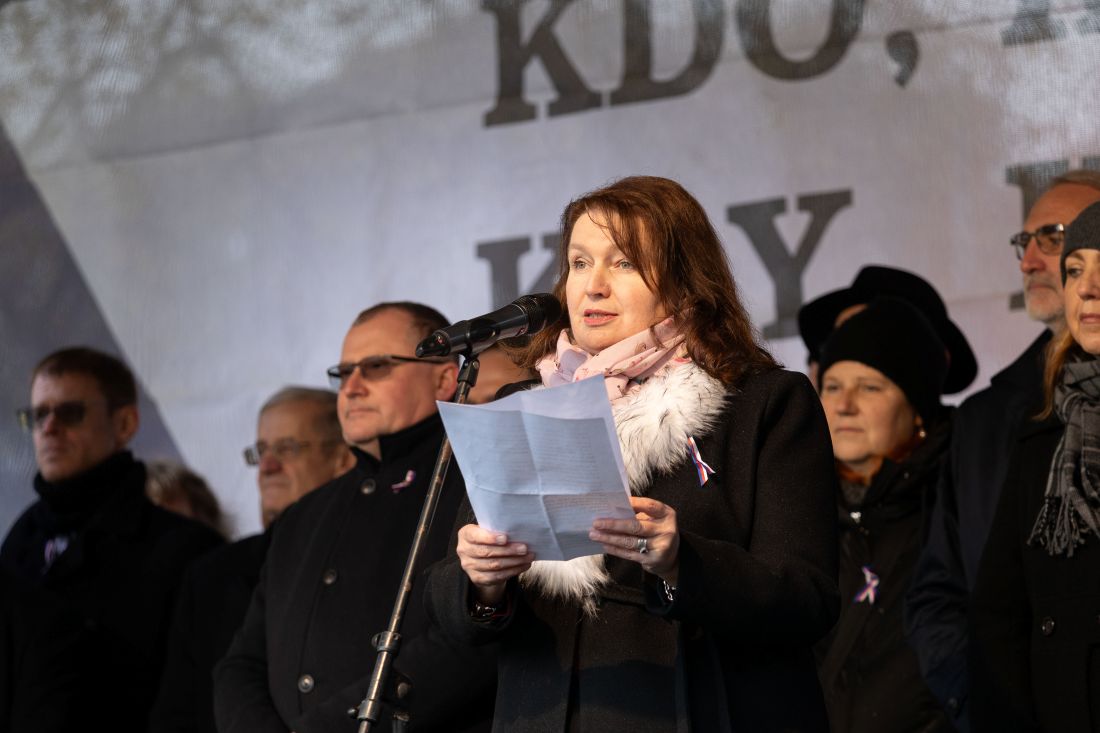 Tehdejší zkušenost podle ní ukazuje, že svoboda má cenu, kterou stojí za to bránit a že žádné vítězství není definitivní. To, co bylo vybojováno, je třeba neustále chránit. Poukázala na to, že měsíc listopad nám každoročně připomíná radost i bolest, odvahu i ztráty a že i dnes jsme svědky tragických událostí, které se sice odehrávají mimo naše hranice, ale hluboce zasahují každého z nás. Zdůraznila přitom roli současných studujících: „Síla je ve vaší každodenní solidaritě – tiché, neokázalé, ale hluboké.“ Právě v ochotě přijímat zahraniční spolužáky a pomáhat lidem prchajícím před válkou podle ní pokračuje odkaz 17. listopadu.