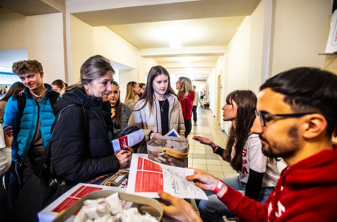 „Baví mě, že můžu uchazečům pomoct najít tu správnou fakultu. A i když to třeba není ta moje, tady je oproti Gaudeamu větší šance, že i když půjdou jinam, pořád zůstanou na Karlovce. A to je super,“ říká Monika Říhová, studentka Laboratorní diagnostiky na Farmaceutické fakultě v Hradci Králové UK. „Líbí se mi tady ta rodinná atmosféra,“ dodává Kateřina Kryštofová, studentka nového oboru Léčivé rostliny a nutraceutika na stejné fakultě.