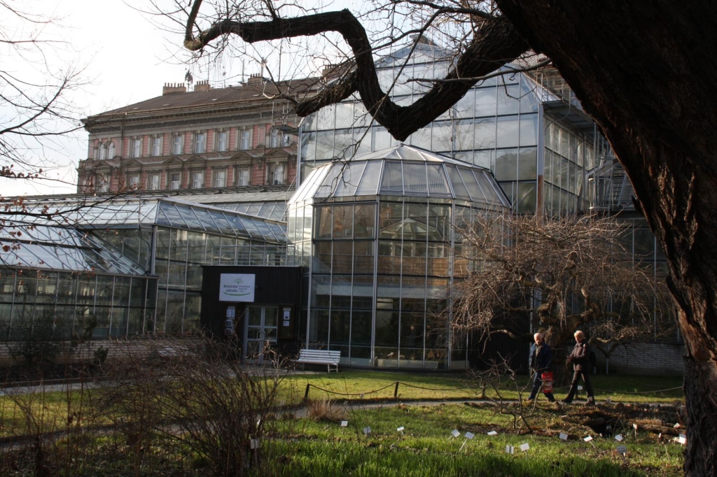 Botanická zahrada Univerzity Karlovy byla založena roku 1775 Josefem Bohumírem Mikanem a byla umístěna na Smíchově v místě, kde dnes začíná Jiráskův most. Na své současné stanoviště na Novém Městě musela být zahrada přenesena kvůli četným povodním, které ji sužovaly. Roku 1880 tak pražské univerzity – česká a německá – odkoupily od České společnosti pro zvelebování zahradnictví v Praze zahradu na Slupských stráních, kterou převzaly spolu s velkým skleníkem z 19. století i se sbírkou rostlin.