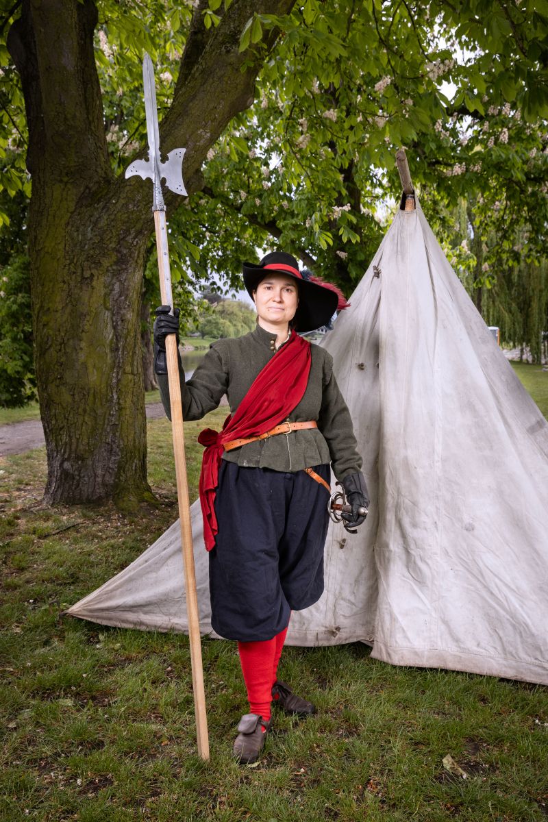 2024 05 03 historicka Klara Andresova 010Nenechte se však mýlit tím, že ženy v armádě pouze vypomáhaly. „Historie zná případy, kdy ženy aktivně bojovaly, ovšem v mužských převlecích, protože oficiálně se to nesmělo. A veřejnost se to později dozvěděla například jen díky tomu, že svůj příběh zveřejnily. Jako například Catalina de Erauso, která bojovala ve Španělsku i v Americe. Ta dokonce velela praporci, nicméně na hejtmana ji nikdy nepovýšili pro údajnou krutost,“ připomíná Andresová, jež sama někdy vystupuje jako velitel mušketýrů ve spolku Regiment zemské hotovosti.