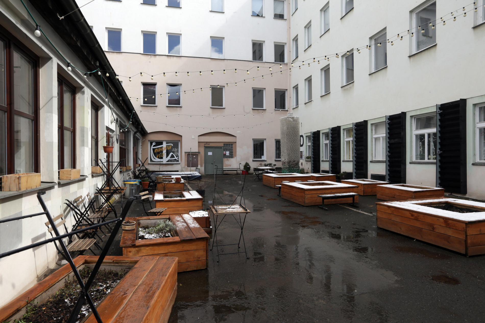 „Kampus Hybernská je un genio loco. Kavárna s nejlepší zmrzlinou na utajeném dvorku v centru města, hudební klub ve staré stáji, studentský dům v labyrintu místností, dětský koutek s pískovištěm, ateliér v patře, kde najdete všechno od linorytu po plastelínu, psychologická poradna pro studenty, nahrávací studio Wombat, archeologická laboratoř, galerie, kde vystavují hvězdy i studenti, Knihovna věcí, kde si lze půjčit vše od loutny přes stan po kočárek, podcastové studio, kinosál, čítárna a reuse Cirkulární dílna, kde si lze opravit nábytek i vyrobit dřevěné hračky, ale také Institut cirkulární ekonomiky, temná komora Temora, anebo ranní jóga s Hankou.