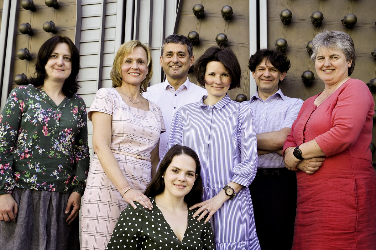 „Nadfakultní tvůrčí tým.“ Své síly a znalosti v něm spojily 3. LF UK, FF UK a pochopitelně Nakladatelství Karolinum. Zleva: Iveta Čermáková, Eva Flanderková, Tereza Bakusová, Petr Čermák, Daria Stytsenko, Petr Valo a Marie Zvoníčková.