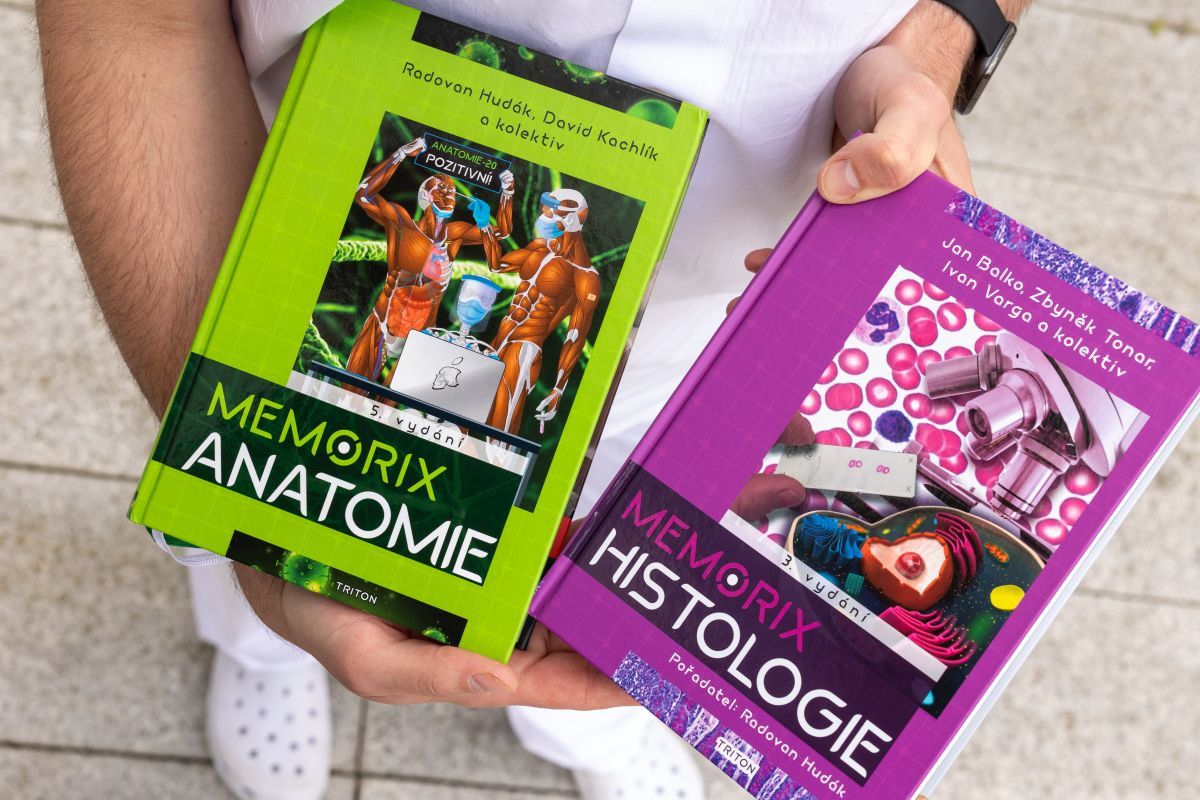 Dodejme, že spolu s ním Memorix anatomie tvořili profesor David Kachlík, dnes přednosta Ústavu anatomie 2. LF UK, grafikem byl Jan Balko, nyní zástupce přednosty na Ústavu patologie a molekulární medicíny 2. LF UK. Tvůrčí kolektiv (v letech 2011-2013) doplnili další kolegové z 2. LF, 3. LF a LF MU v Brně, kteří nyní pracují na velkých klinikách fakultních nemocnic: Martin Čepelík (3. LF), Jakub Miletín (2. LF), Matěj Halaj (FN Olomouc), Barbora Beňová (2. LF), Ladislav Douda (LFHK), a grafička Šárka Zavázalová (3. LF). Spoluautor Ondřej Volný (FN Ostrava) se posléze stal jedním z hlavních autorů anglického vydání Memorix Anatomy (a v roce 2022 i nejmladším docentem v oboru neurologie v ČR – pozn. red).