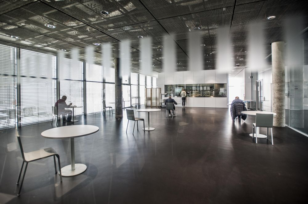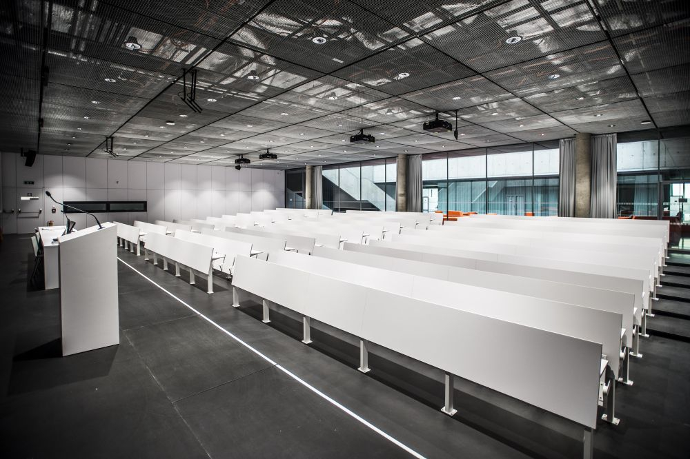 Její spolužačce z ročníku Zuzaně ale právě velký otevřený prostor, který je pro budovu charakteristický, nevyhovuje. „Působí to tady na mě moc prázdně. Jsem zvyklá na menší prostory. Posluchárny a seminární místnosti jsou ale příjemné. Líbí se mi kavárna a knihovna.“