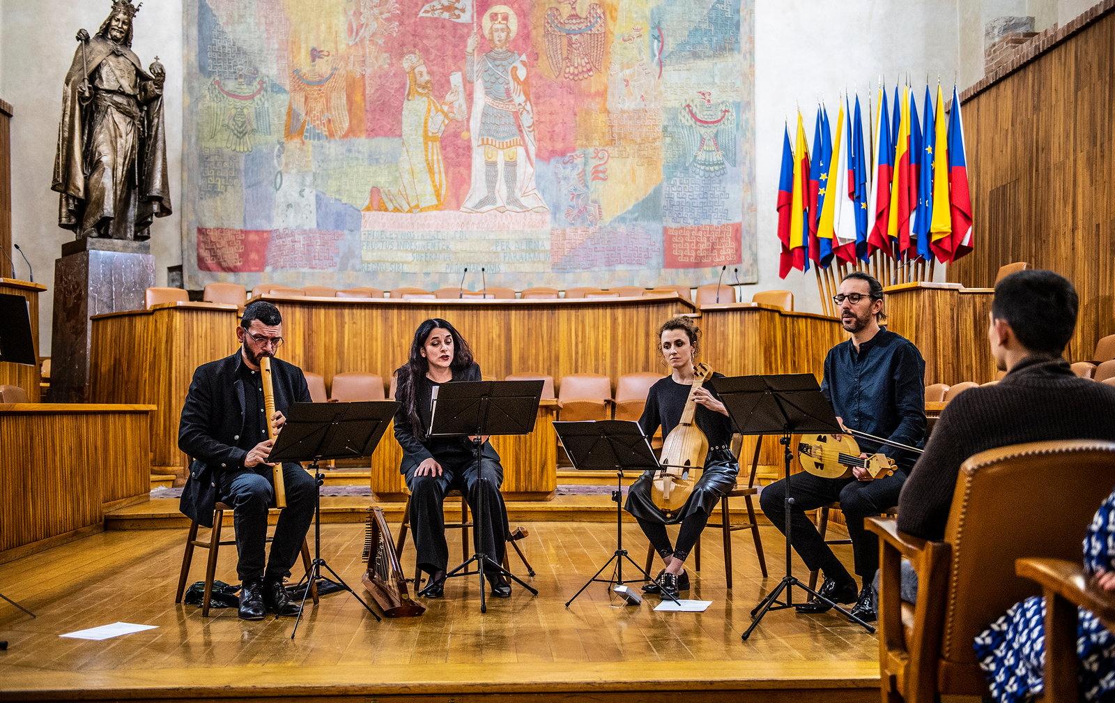 Ansámbl Cappella Mariana vystoupil ve složení Hana Blažíková (soprán, gotická harfa), Vojtěch Semerád (tenor, fidula), Jakub Kydlíček (flétny) a Mélusine de Pas (tenorová fidula). Cappella Mariana se věnuje tzv. historicky poučené interpretaci středověké, renesanční a barokní hudby. Věhlas na domácí i světové scéně si vydobyla vedle pečlivého důrazu na autenticitu své hudební interpretace (včetně využívání replik dobových nástrojů) i objevnými tematickými programy čerpajícími i z repertoáru italské, vlámské či anglické středověké a renesanční polyfonie. Často též spolupracovala na hudebních projektech s Lenkou Hlávkovou, která se intenzivně věnovala zejména hudební kultuře střední Evropy v pozdním středověku.