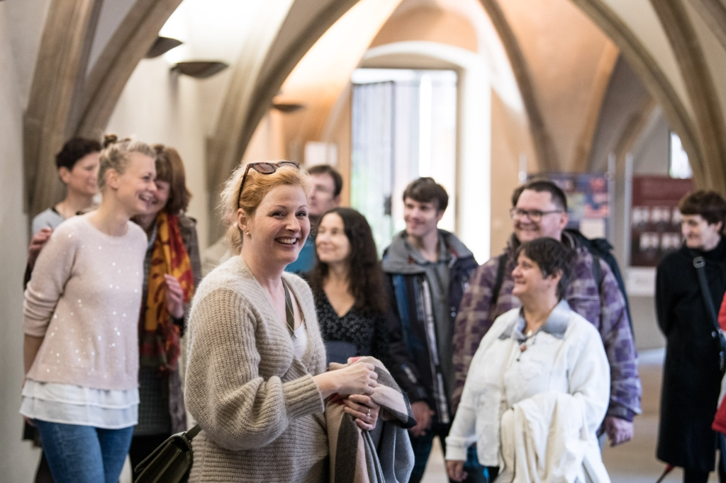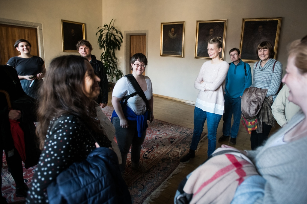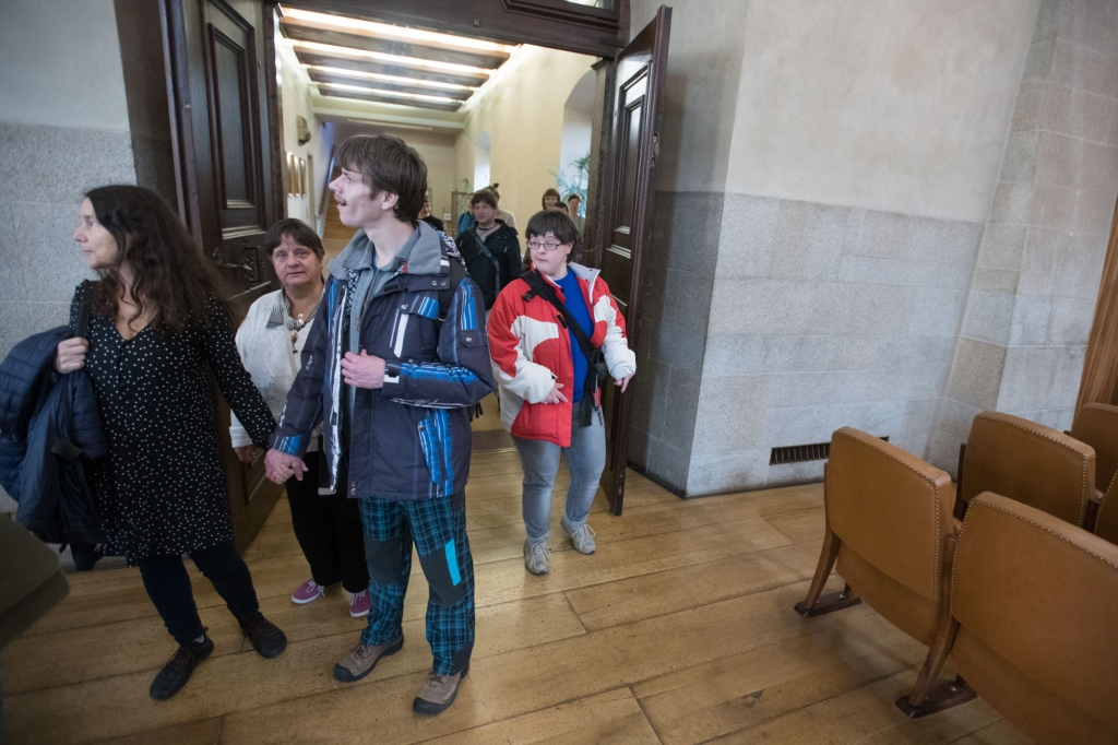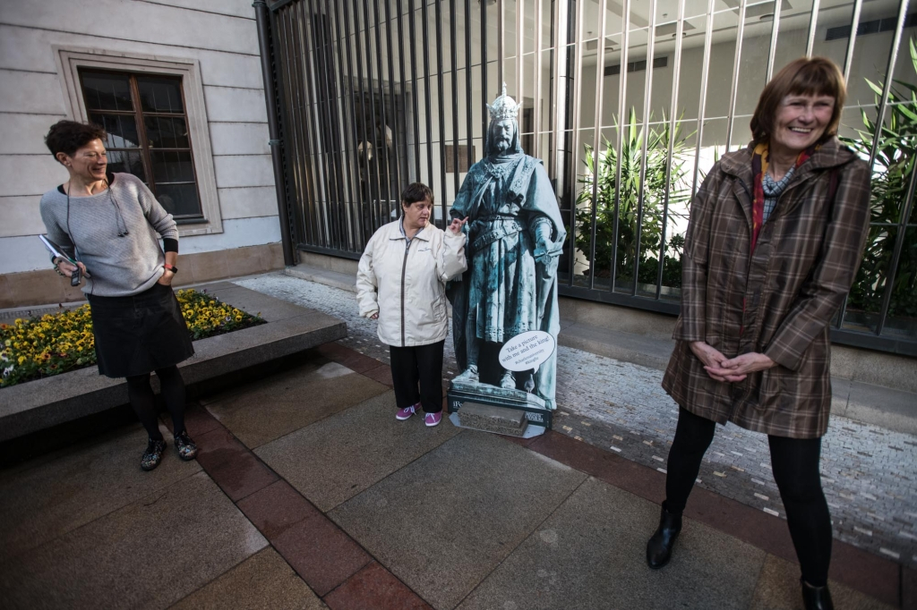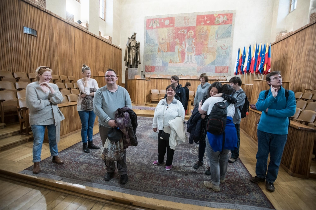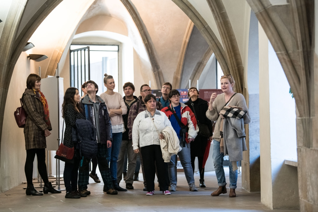 Ráďa, Pavel, Lukáš, Petr, Danuše, Jaruška a Richard se spolu se svým doprovodem Věrou, Andreou a Vlastou na prohlídku Karolina moc těšili. Už pár minut před devátou ostýchavě postávali na místě srazu a vzhlíželi k majestátní budově na Ovocném trhu. Tato malá skupinka lidí je už na první pohled jiná než běžní návštěvníci – všichni do jednoho mají srdce na dlani a věří v dobro všech kolem. Proto jsou vděčni za každou informaci, za každou příležitost k seznámení, za každé slovo a větu při rozhovoru. Když se jich na úvod zeptám, co vědí o Karlově univerzitě, ani na chvíli nezaváhal jinak trochu nesmělý Péťa a vykřikl: „Založil ji Karel IV. v roce 1348!“