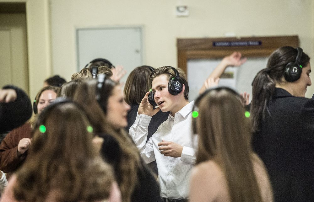 Toho však slyšeli jen ti, kdo si od něj vypůjčili sluchátka, aby hudba nerušila přednášky v sálech. Nepoučený náhodný kolemjdoucí tak mohl vidět poněkud bizarní výjev, kdy se kolem sochy patrona všech právníků svatého Iva extaticky vlnil rozjařený dav, ačkoliv hudba nebyla nikde slyšet...