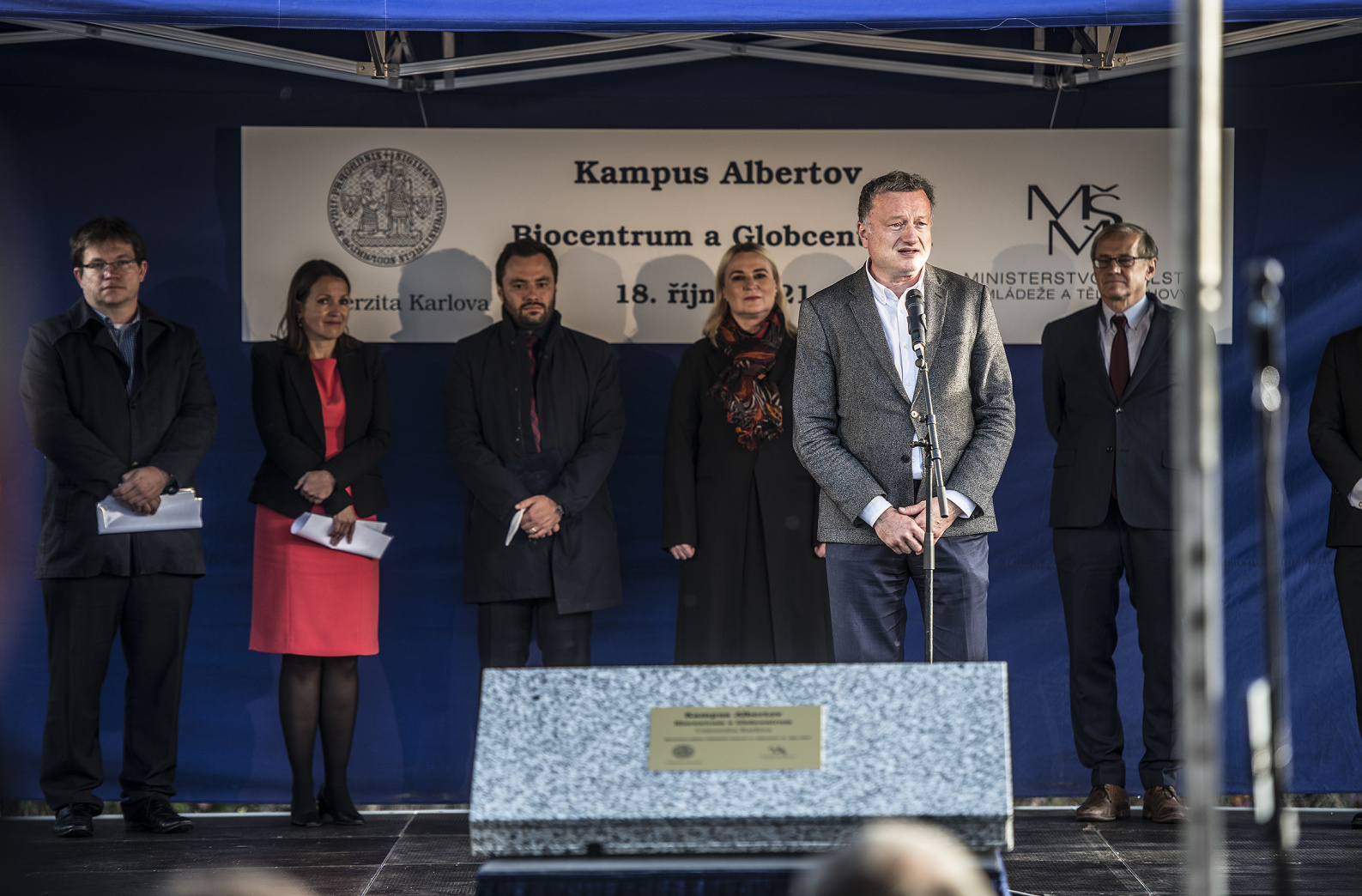„Dostavba kampusu na Albertově je aktuálně nejdůležitějším projektem Univerzity Karlovy. Jedná se o bezkonkurenčně největší investici českého státu a největší výstavbu UK v centru hlavního města Prahy za posledních sto let. Před několika měsíci jsme obdrželi velice důležité územní rozhodnutí, díky němuž dnes můžeme slavnostně celou stavbu zahájit. Pevně věřím, že bude dodržen harmonogram a kampus bude dostavěn v roce 2025, aby o rok později mohl přivítat studenty a vědecké pracovníky“, uvedl rektor Zima.