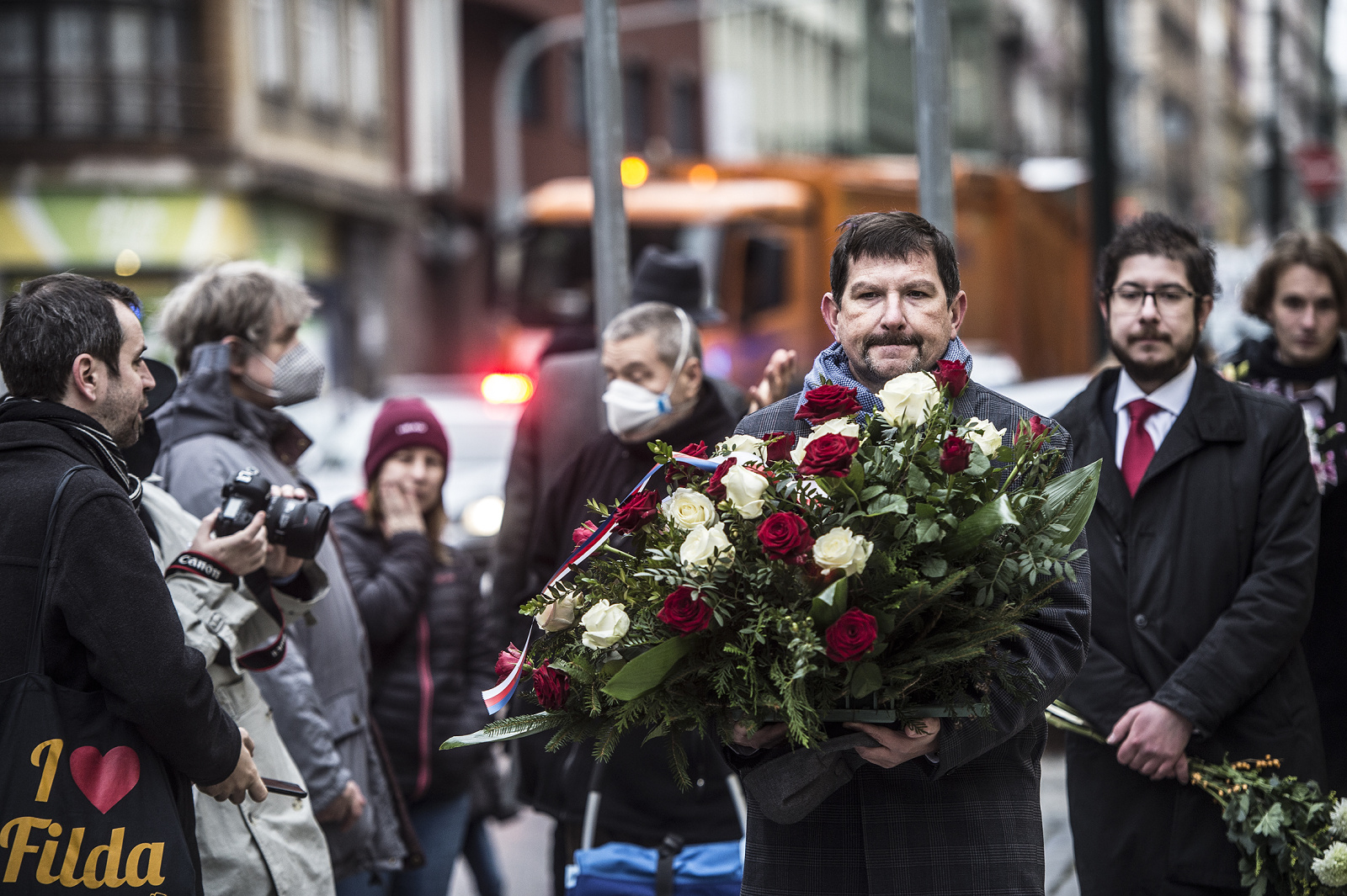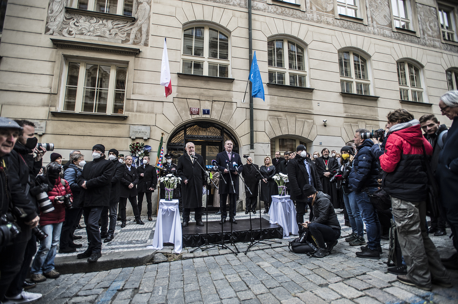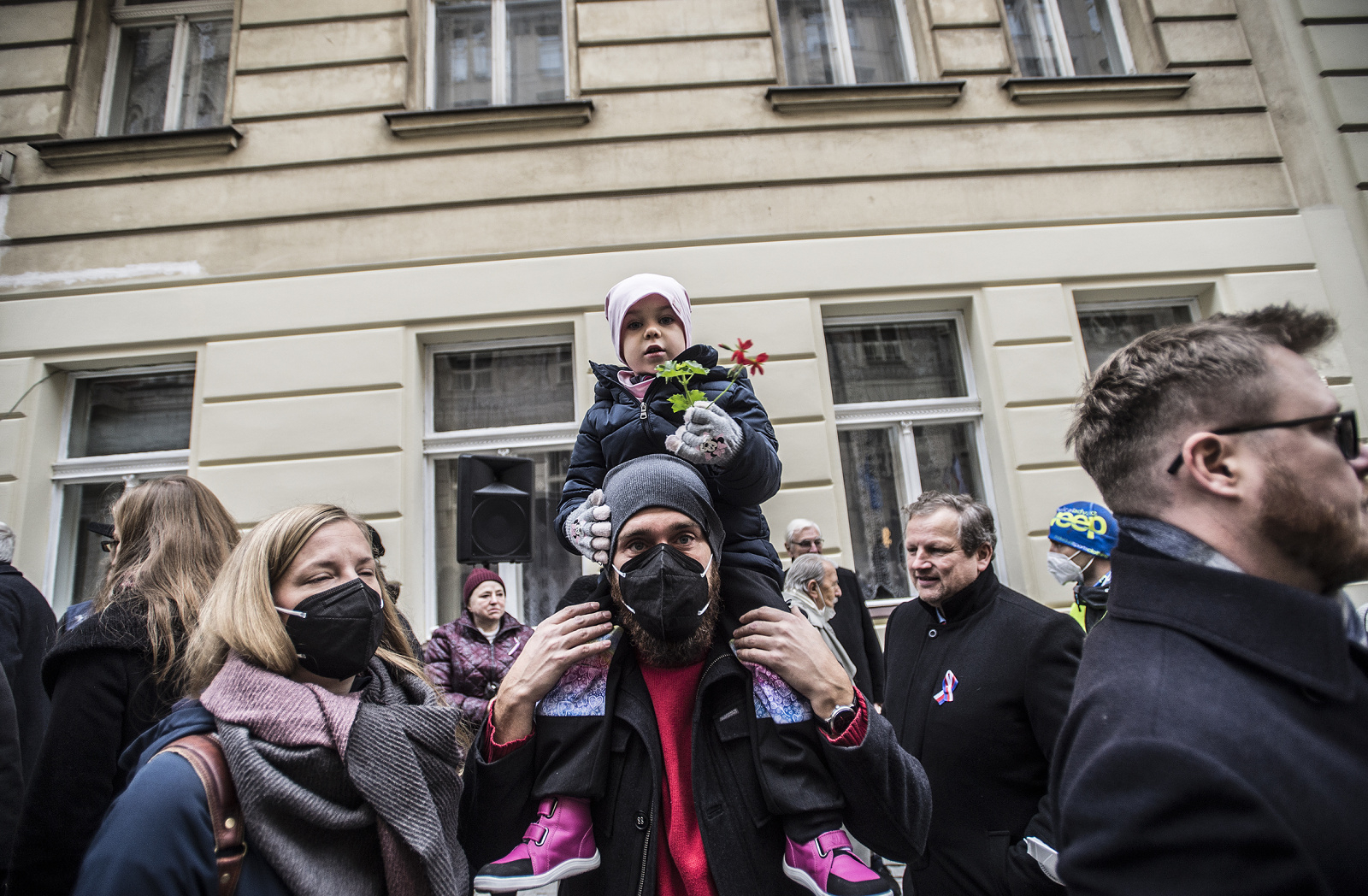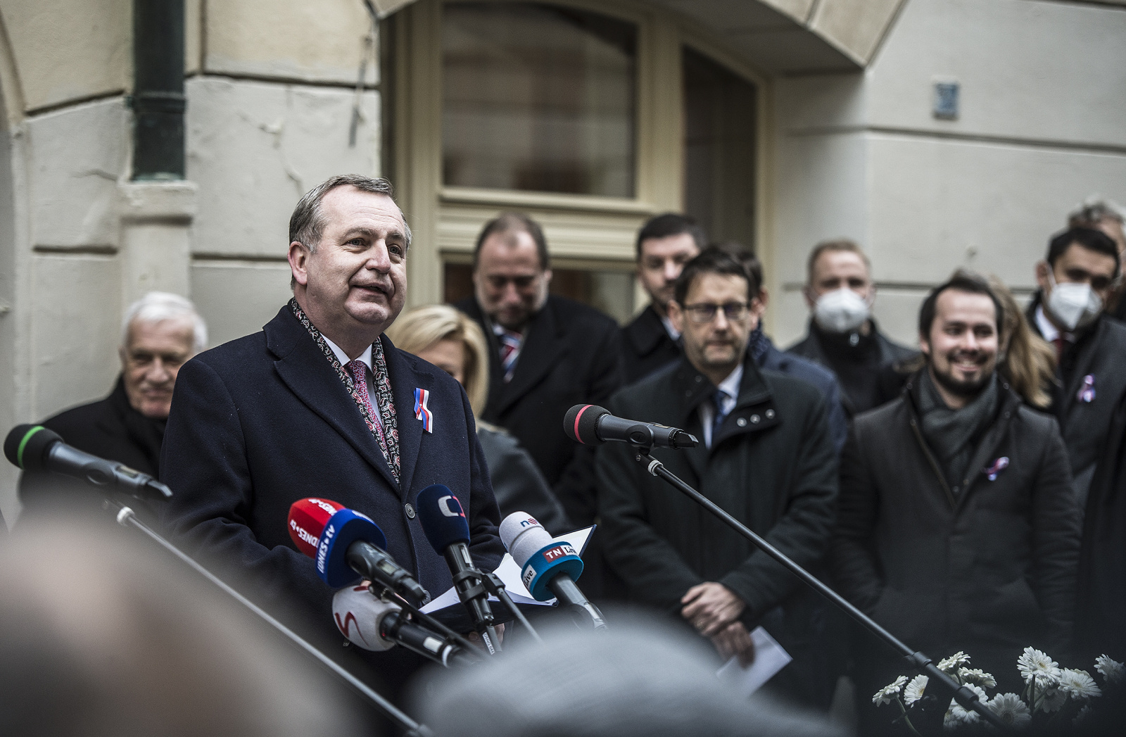 Občané a také delegace UK šla následně oslavit velký den demokracie, během kterého budoucí premiér a emeritní rektor Masarykovy univerzity Petr Fiala (ODS) představil složení nové české vlády, na Národní třídu. Tam, kde komunistická policie na podzim 1989 tvrdě zasáhla proti demonstrantům. Věnec přinesli rektor Zima a prorektoři Jan Royt, Jan Konvalinka a Miroslav Bárta (na snímku za rektorem zprava doleva).