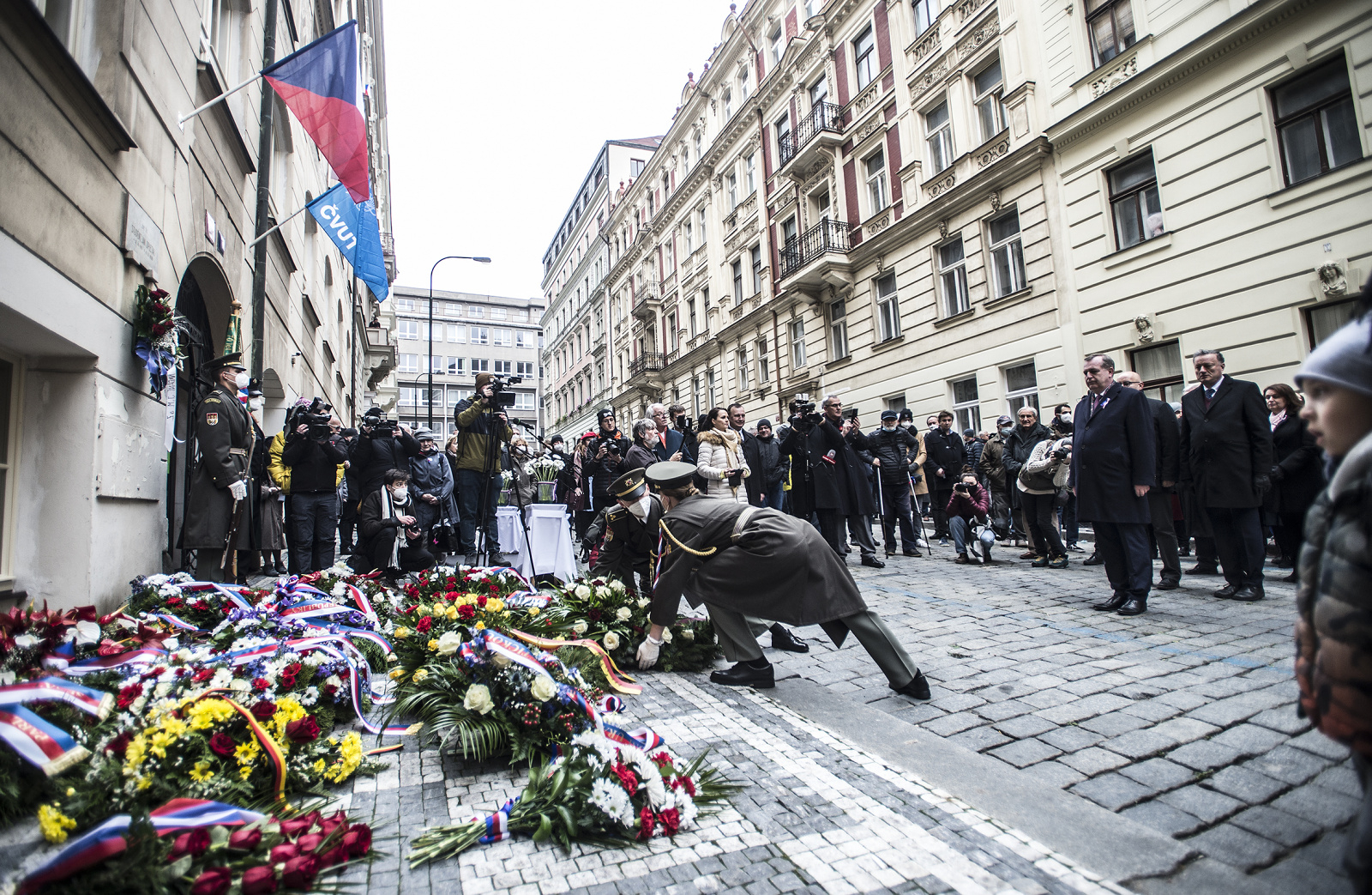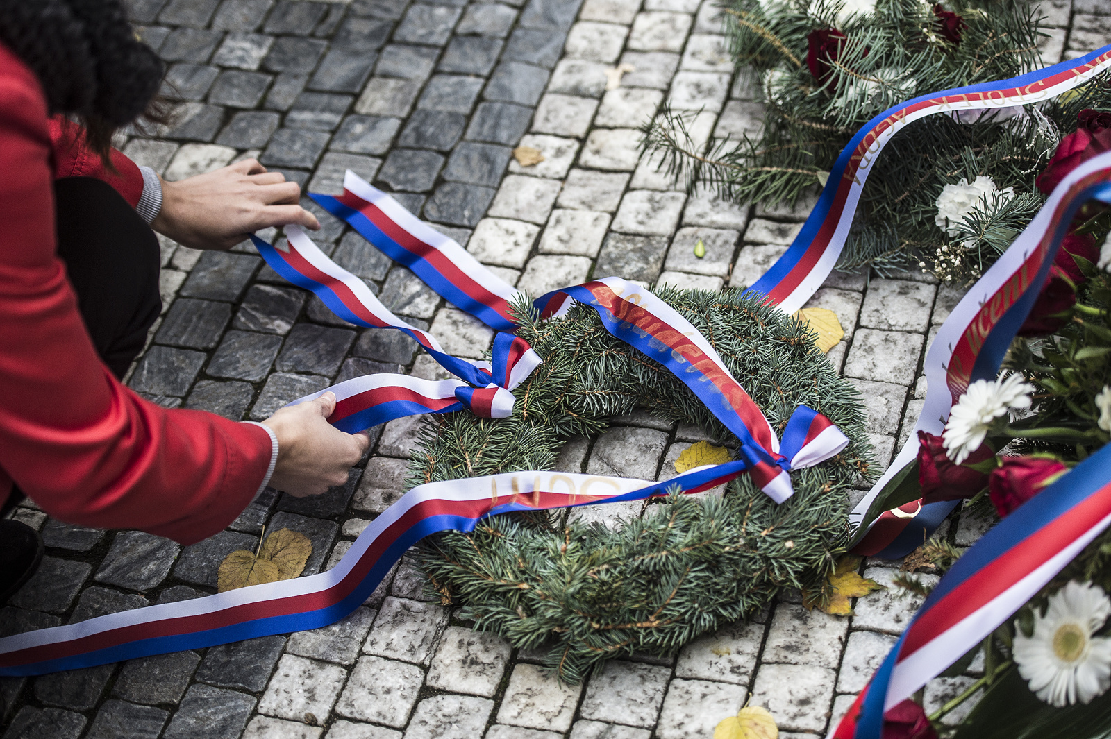 Tradiční slavnostní akty však začaly již ráno po deváté hodině, kdy vedení Univerzity Karlovy (spolu s budoucí rektorkou Milenou Králíčkovou) položilo věnce u Hlávkovy koleje s dalšími zástupci vysokých škol.