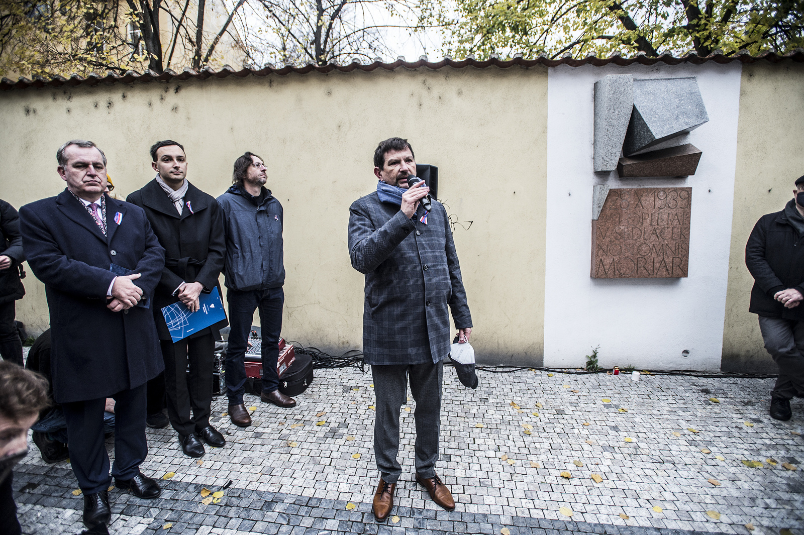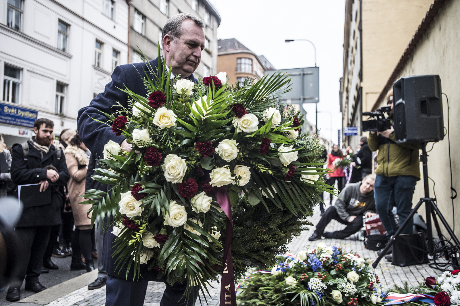 Účastníci setkání položili u pamětní desky věnce a zapalovali svíčky. Profesor Milan Pospíšil, předseda Rady vysokých škol (RVŠ), hovořil z pódia o naději pro zemi, ve které bude společnost držet pospolu.