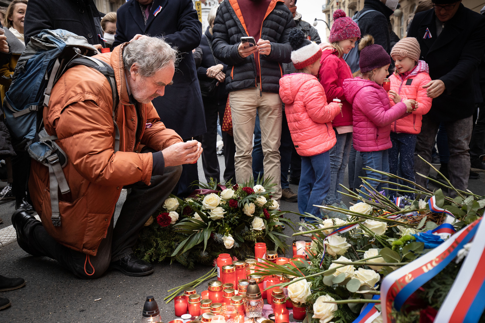 Slavnostní program nabitého dne, který byl letos již o poznání méně komornější než loni, pokračoval po poledni na pražském Albertově, kde v roce 1989 začaly pohnuté události, jež změnily dějiny a přivedly Česko a Slovensko mezi plně demokratické země se zaručenými lidskými právy a svobodami.