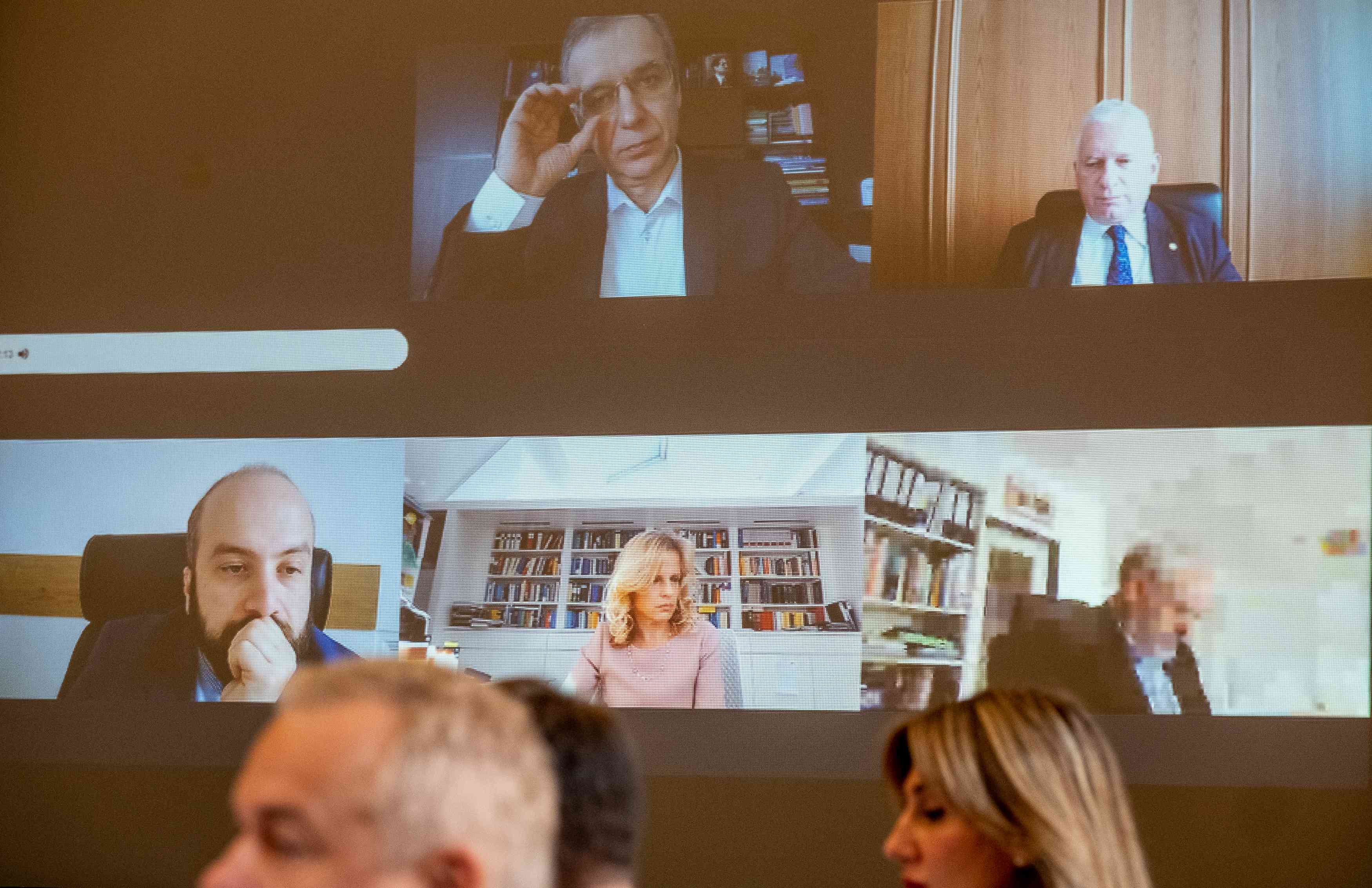 Kromě rektorek a rektorů či prorektorky UK pro zahraniční vztahy Markéty Křížové se jednání i slavnostního aktu ve Vlasteneckém sále zúčastnili rovněž zástupci ministerstva školství (včetně náměstka Jaroslava Millera, emeritního rektora Univerzity Palackého; na snímku opět u řečnického pódia), ministerstva zahraničních věcí či diplomatických sborů.