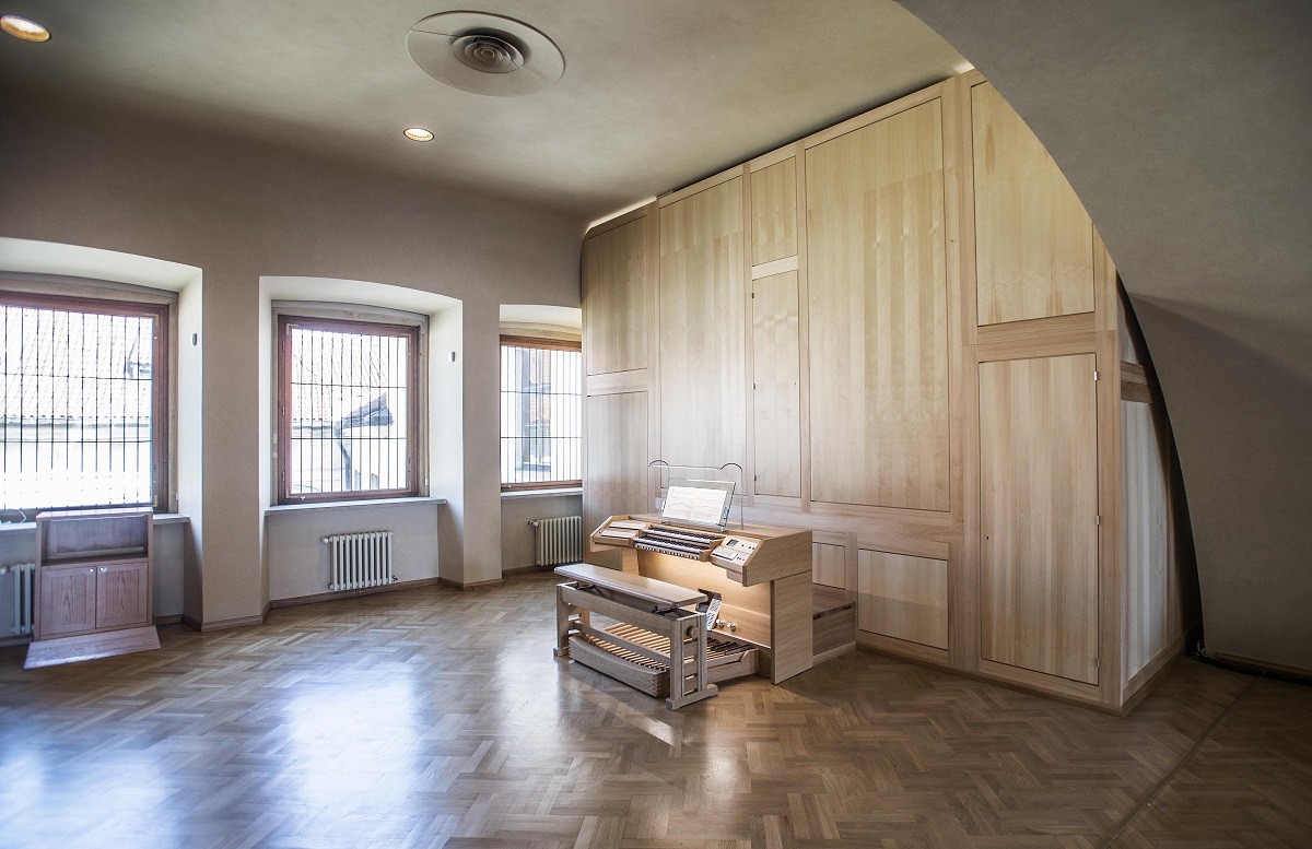 V nadcházejícím akademickém roce 2021/2022 přitáhne oči pozorovatelů, a především pak i uši posluchačů, výjimečný klávesový nástroj z rodinné dílny Orgelbau Vleugels. Byl Karolinu „ušit“ na míru a při předpokládané kondici by měl libé pocity zprostředkovávat nejméně další čtvrtstoletí.