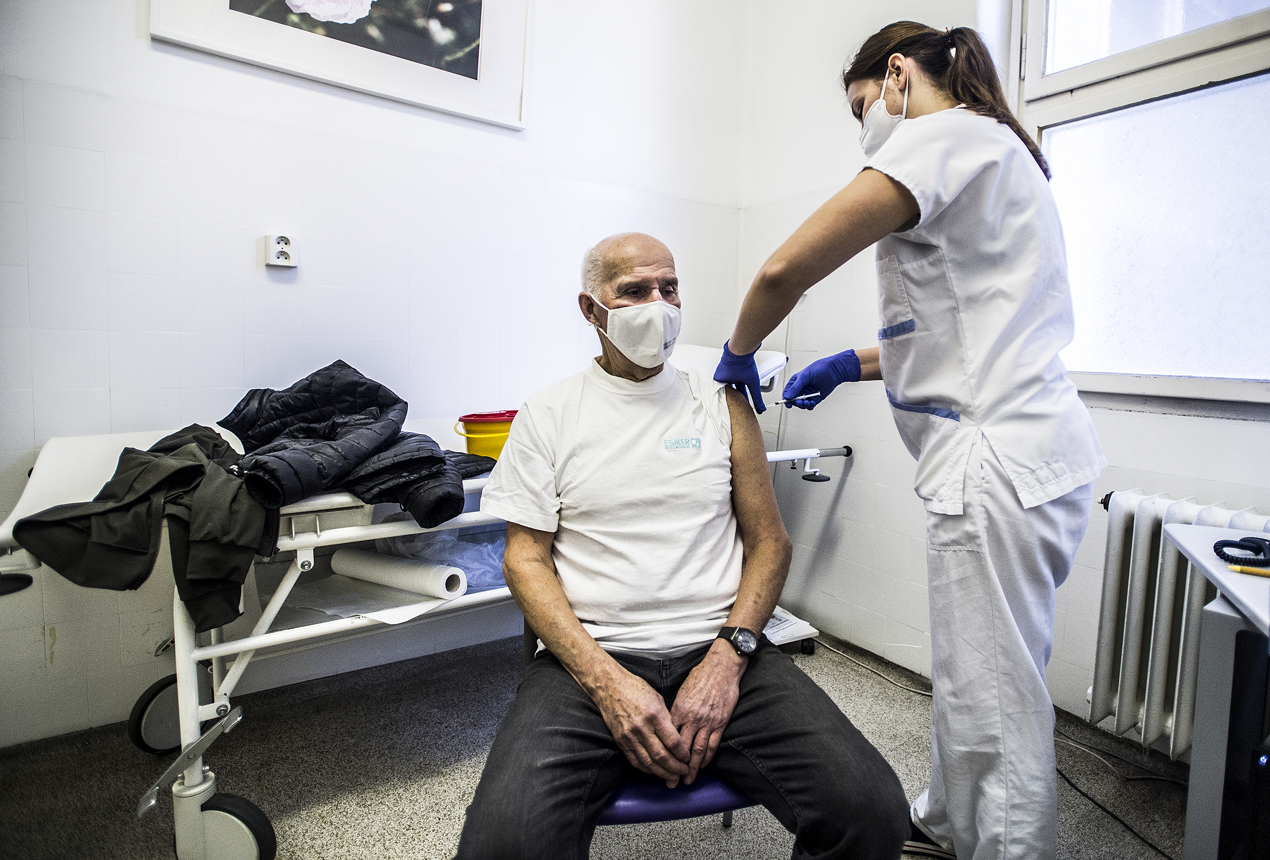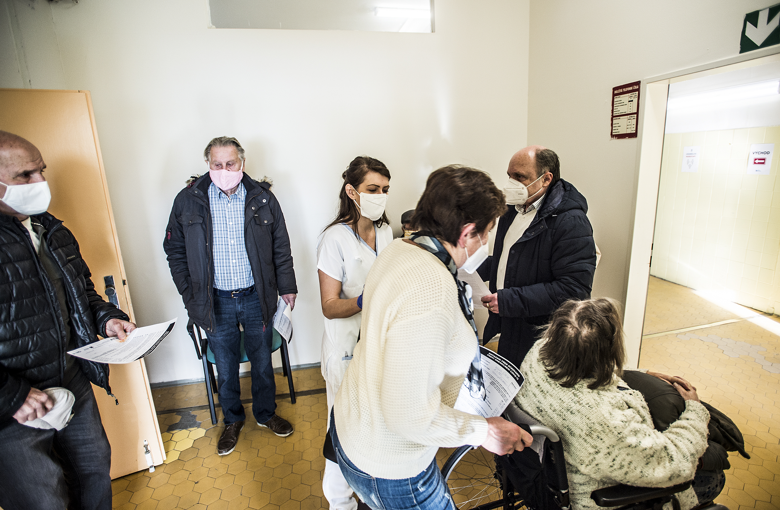 „Zaujal mě rychlý průběh očkování, ochota a vstřícnost personálu. A také to, jak vážně to senioři berou – jsou disciplinovaní a v některých případech vyloženě i pěkně až svátečně oblečeni,“ říká fotograf Vladimír Šigut, jenž nasazení lékařů, zdravotníků a také mediků UK zaznamenává od počátků jarní krize v řadě fakultních nemocnic i terénu – včetně odběrové sanitky.