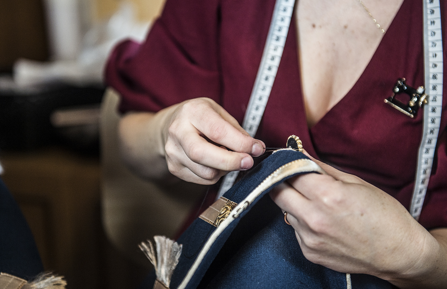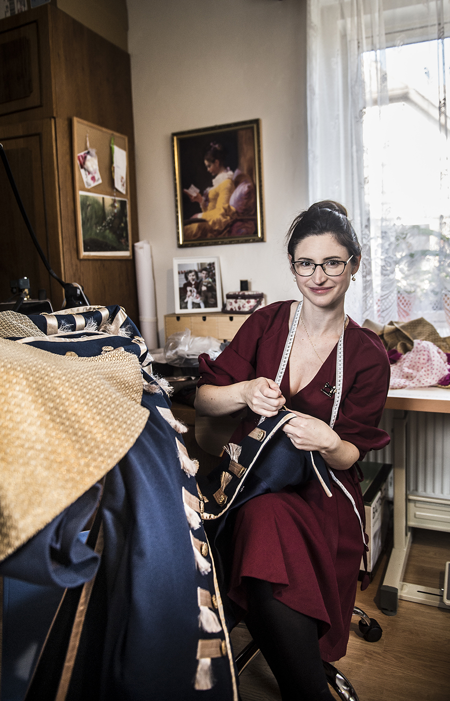„U některých replik bylo třeba spolupracovat s prýmkařem, který podle zadání zhotovil ozdobné borty. Nápodoby hermelínových límců svěřuji kožešnici, se kterou dlouhodobě spolupracuji. Součástí zdobení je i velké množství knoflíků, kdy některé musíte ručně omotávat přízí na dřevěný základ, na který se následně vyšívá vzorek; jiné jsou potahované hedvábím anebo brokátem. Taláry se zhotovují klasickými krejčovskými technologiemi, takže kromě podšívky obsahují různé výztužné vložky, žíněná plátna a podobně,“ doplňuje expertní švadlena, která i svoji bakalářskou a magisterskou práci z antropologie věnovala na FHS UK dějinám odívání.
