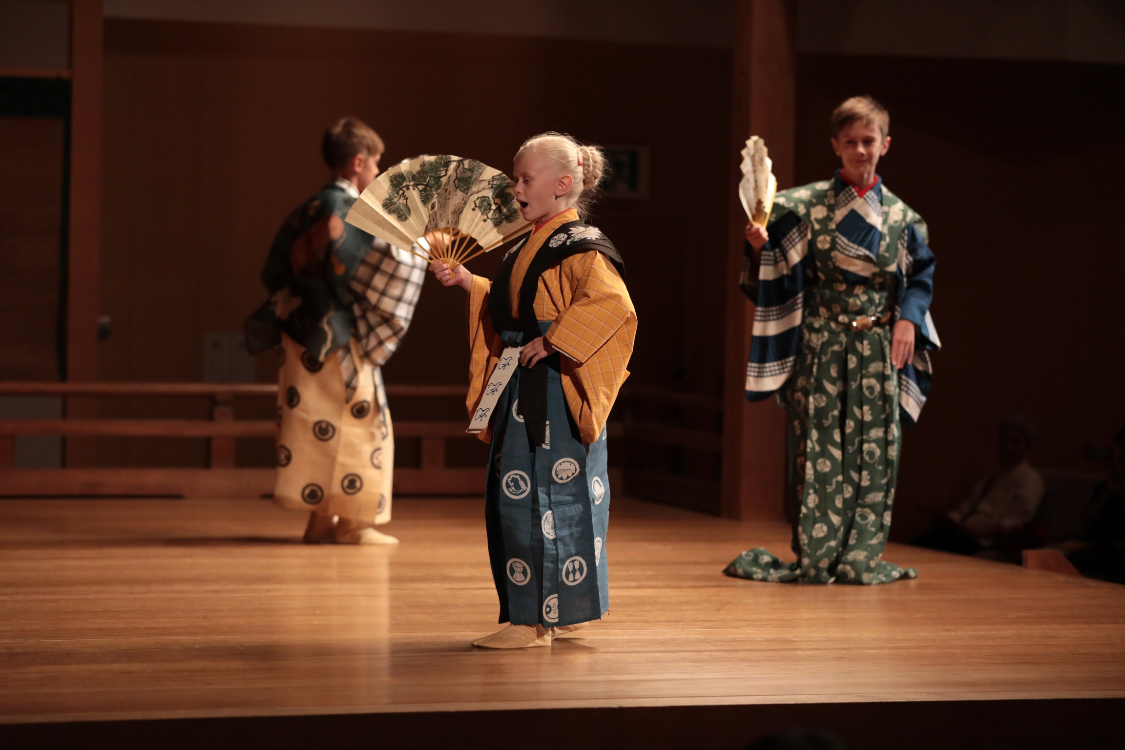 Přesně tak. Scénářů her kjógen existuje kolem dvou set. Ve více než polovině se tančí a zpívá. V Česku jich má smysl hrát tak zhruba šedesát. Zbylé nelze, buďto kvůli extrémní náročnosti na hereckou techniku, které zatím nejsme schopni, nebo kvůli nepřevoditelnosti kulturně zde neuchopitelného tématu, nebo stojí na slovních hříčkách, jimž sice rozumím, ale nedokážu najít alternativu v češtině... Ale těch zbylých šedesát kusů, to jsou perly žánru. Tančí a zpívá se téměř ve všech. Scénický tanec však v žánru kjógen existuje i samostatně: první základní i se sborovým zpěvem je téměř hotov. Premiéra bude letos v létě. A inspirativní byl i pro naše učitele v Kjótu, neboť tam byla také divadla dlouho zavřená. Domluvili jsme se na zkouškách on-line: přes videohovor, my v Brně, oni v Japonsku. Nazkoušené části jsme odehráli – a dostali k tomu komentář a režijní rady. Ano, ideální to nebylo, ale je to novum pro obě strany.