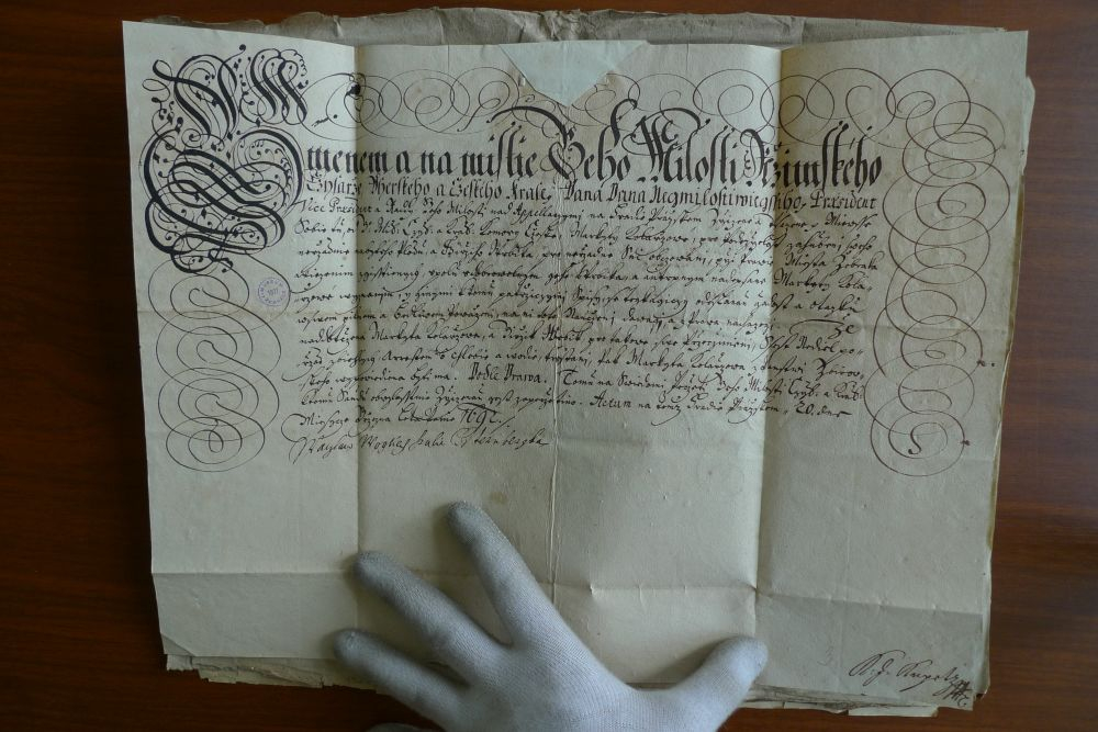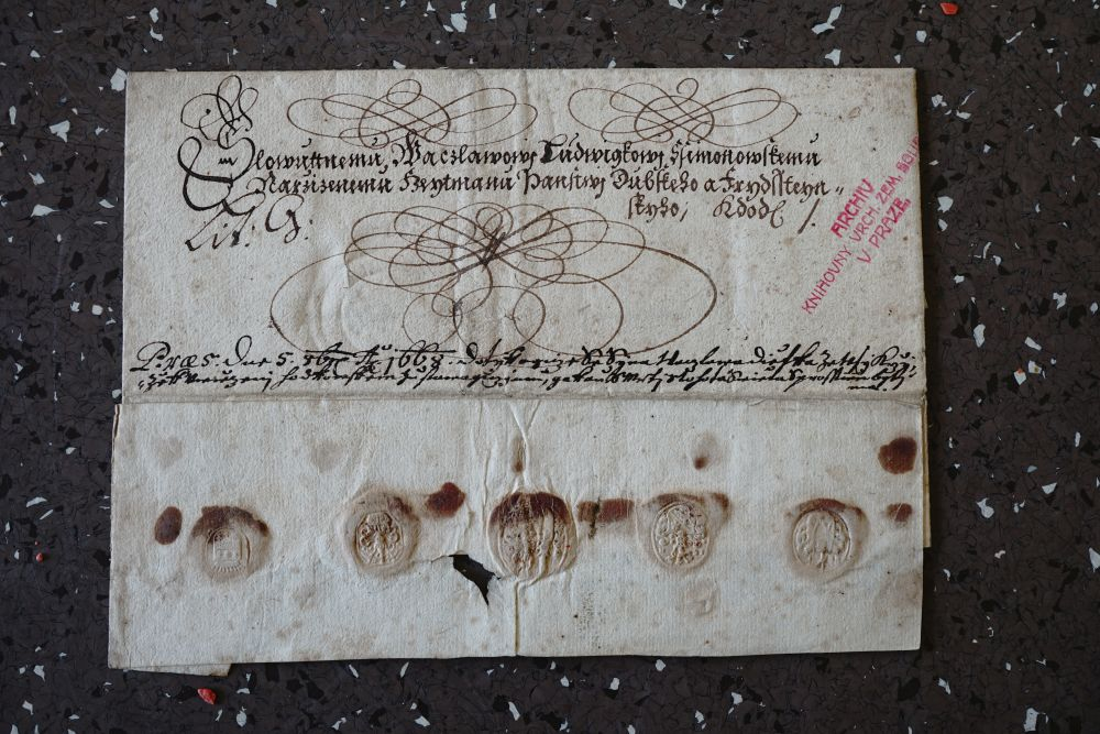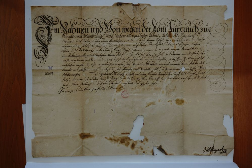 Originál rozhodnutí Apelačního soudu ve věci zastřelení poddaného, rok 1689 (Státní okresní archiv v Rakovníku).