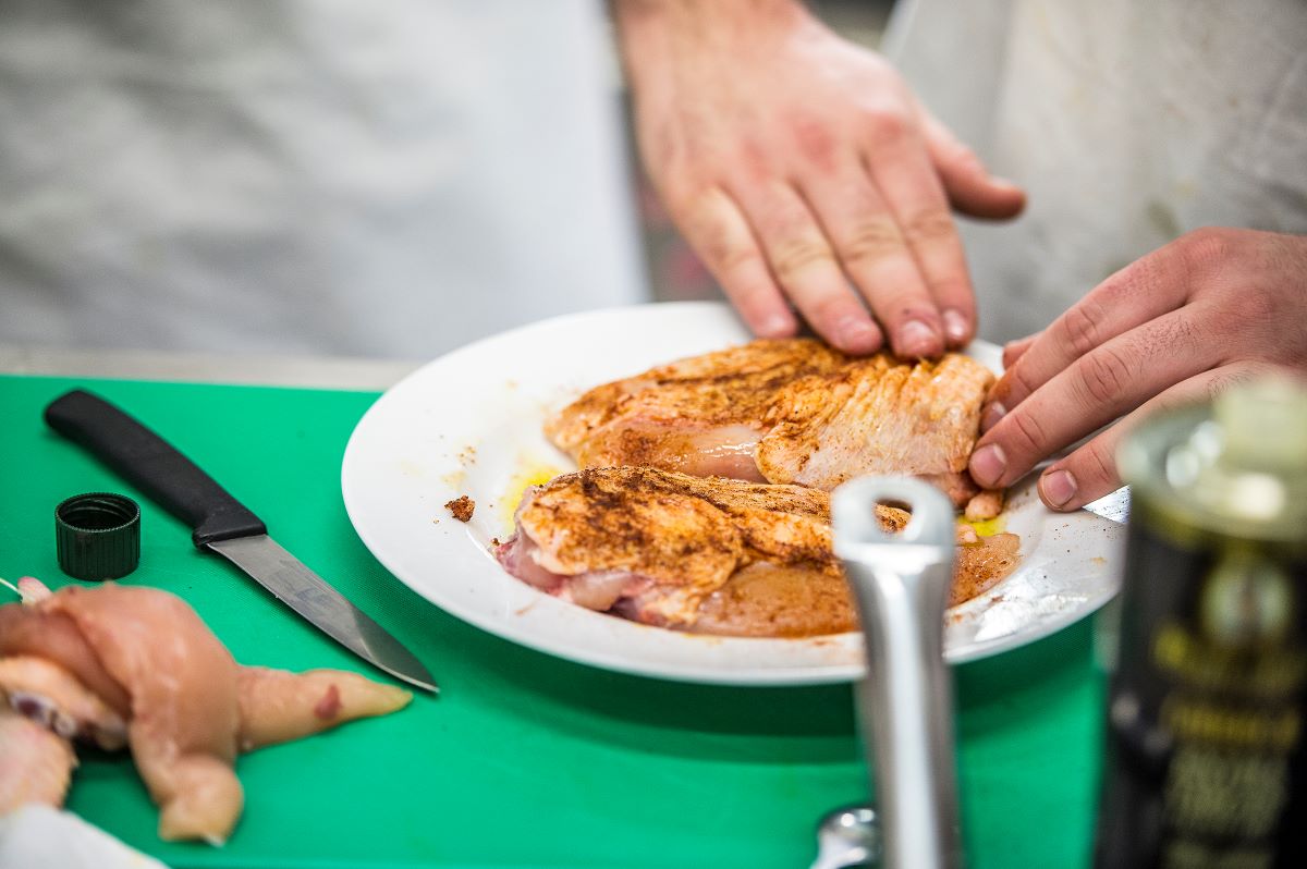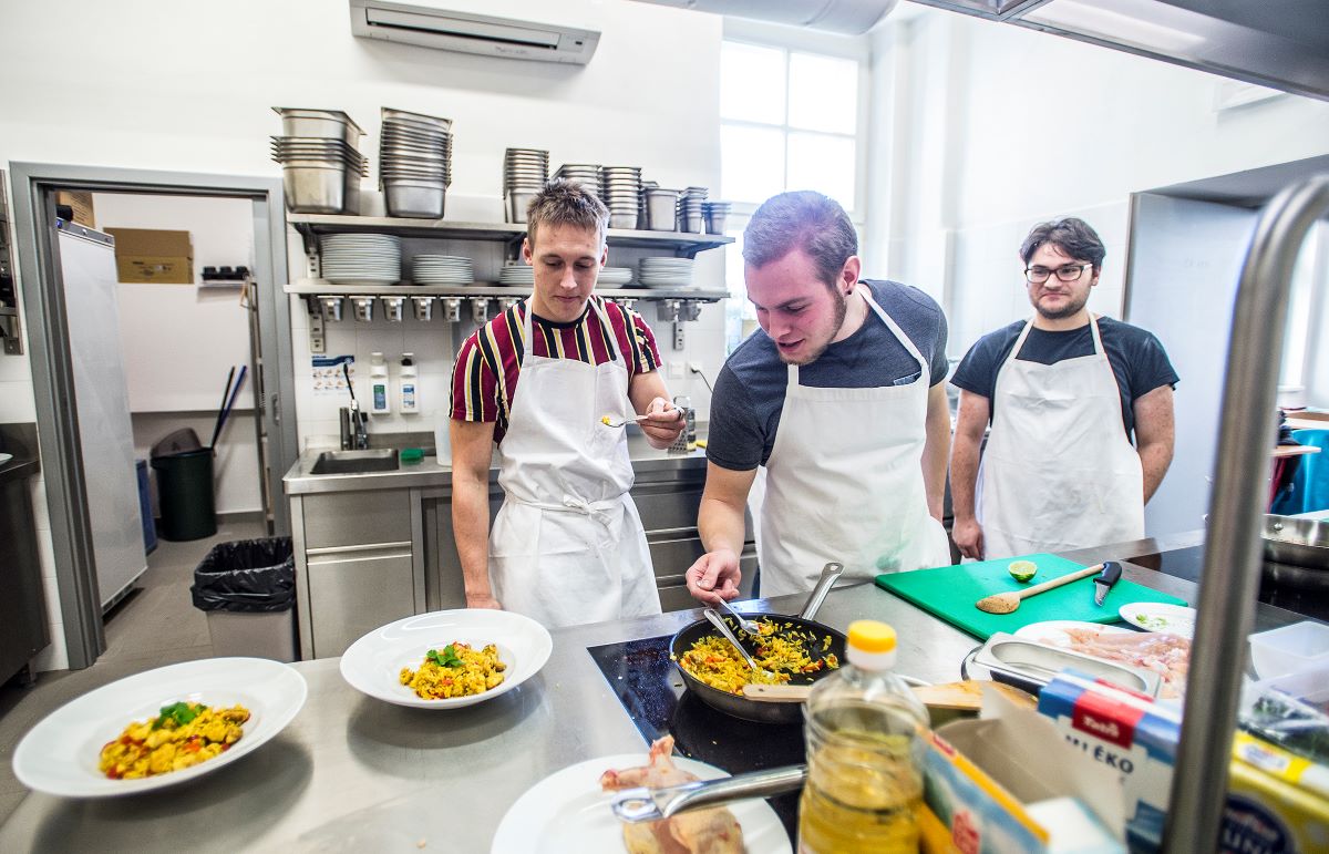V ráji indukčních desek, nerezového nádobí, konvektomatu, mixéru, šokéru či vařeček, zahaleni závojem prosyceným rozmanitou vůní koření si nedávno, 16. ledna, své kuchařské dovednosti prohlubovali studenti prvního ročníku. Vedeni šéfkuchařem Janem Heřmánkem (mimo jiné provozovatelem a šéfkuchařem restaurace Na Rychtě v Ústí nad Labem, přispěvovatelem do gastronomických časopisů a kuchařských knih – pozn. red.) měli za úkol v rámci závěrečného vaření v zimním semestru připravit dva chody – na jídelním lístku stálo: rýžový pilaf (veganská i masitá varianta) a kuřecí stejky.
