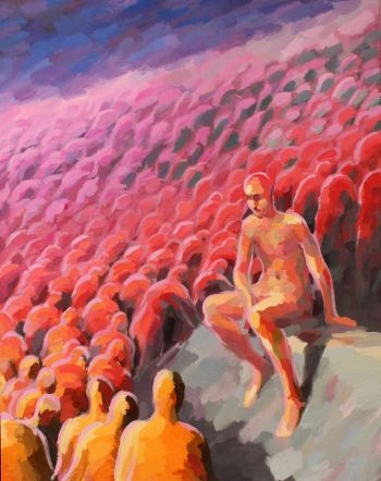 Asi ani ne, třeba ikonografie objevující se v křesťanském umění mě zas tolik nezajímá. Navíc se zabývám i jinými věcmi, nedělám jenom figurativní malbu, ale také krajiny, příležitostně ilustrace. I když minulý rok jsem dělal sérii maleb, která měla existencionální ráz, což se bezpochyby náboženství trochu přibližovalo. Drama člověka, o němž náboženství hovoří, je trochu zachycené i v mé tvorbě.