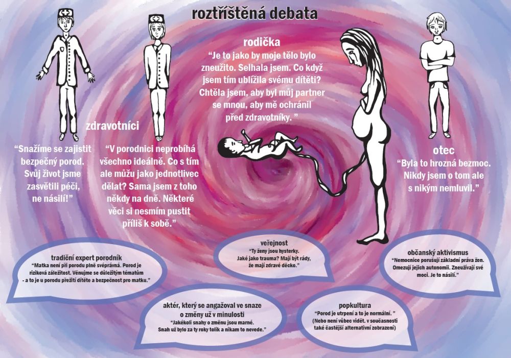 O tom, že se tým chce věnovat tematice porodnosti, byl přesvědčený od začátku. Téma se ale cizelovalo v průběhu toho, jak ho poznával stále více do hloubky, jak podotkla Johana Němečková. „Projekt pro mě byl velmi specifický v tom, že jsem ho vnímala jako takový experiment nehierarchického fungování se všemi jeho výhodami a nevýhodami. Nemáme v týmu člověka, který by naše uvažování a debaty nějak víc korigoval, případně zastavoval. Někdy bylo velmi náročné dojít ke konsenzu. Ze začátku jsme se na celou problematiku dívali především z perspektivy žen-rodiček. Během roku, kdy jsme se tomu intenzivně věnovali, se naše perspektiva ale hodně posunula také k situaci zdravotníků. Najednou jsme viděli, že se při mapování problému a hledání jeho řešení musíme zaměřovat na obě strany,“ upozornila Johana.