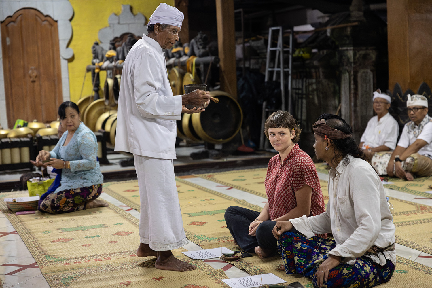 Ve druhém ročníku se přihlásila do programu indonéské vlády Darmasiswa, který nabízí studentům mladším třiceti let studium jazyka nebo tradičního umění. „Můžete studovat batikování, tanec, výtvarné umění, ale já jsem si vybrala hru v gamelanovém orchestru.“ Neobvyklost takového rozhodnutí pořádně ocení jen ten, kdo gamelan někdy slyšel. Evropanovi se může zdát kakofonie cinkání a bubnování hodně nezvyklá, ale Indonésané ji vydrží poslouchat celé hodiny. V gamelanovém orchestru hrají nejrůznější kovové bicí nástroje až na rebab, což je strunný nástroj, na který se hraje smyčcem více zakřiveným než u houslí.