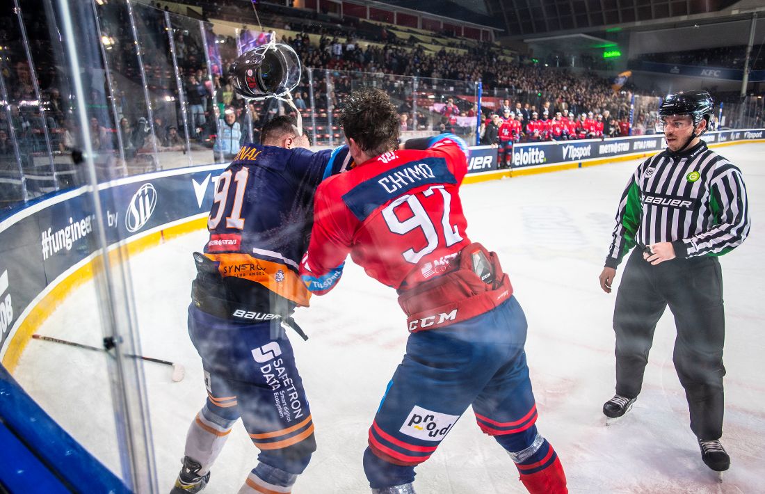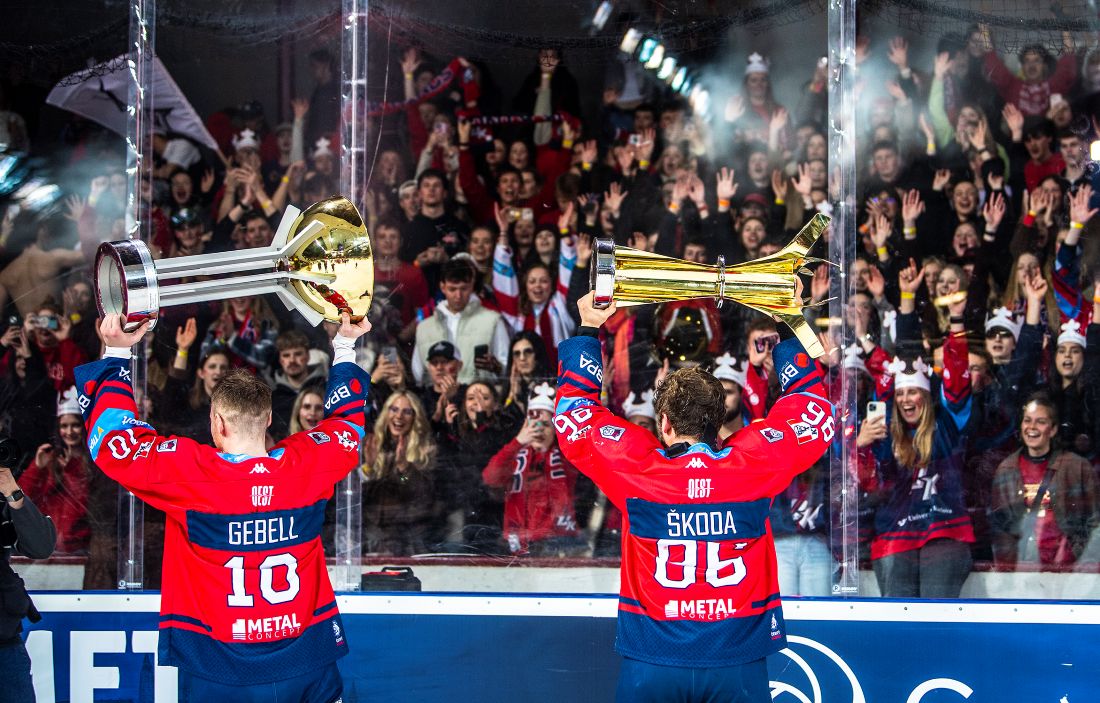 Poslední třetina zápasu už se nesla v duchu šarvátek mezi oběma hráči zápasu na ledě, rozhodčí napočítali jen v poslední části 11 trestů. Triumfální oslavy s dvěma poháry už však hráčům Karlovky nikdo nesebral.